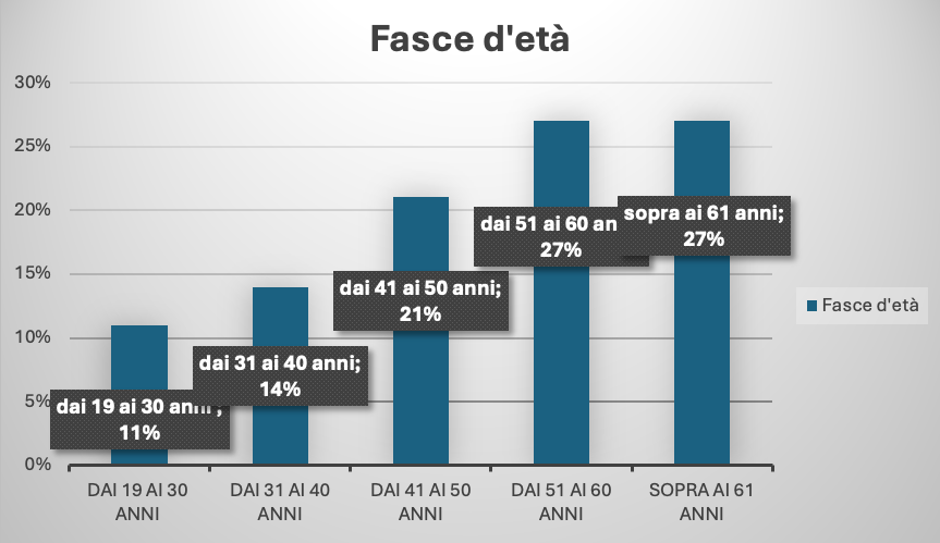 L’analisi dei dati demografici rivela una prevalenza maschile (64%) e una concentrazione significativa della fascia d’età tra i 51 e i 61 anni (27%), al pari di quella sopra i 61 anni (27%). Un dato sottolinea l’importanza crescente dei servizi offerti da Opera Sant’Antonio per le persone più colpite dalla disoccupazione.