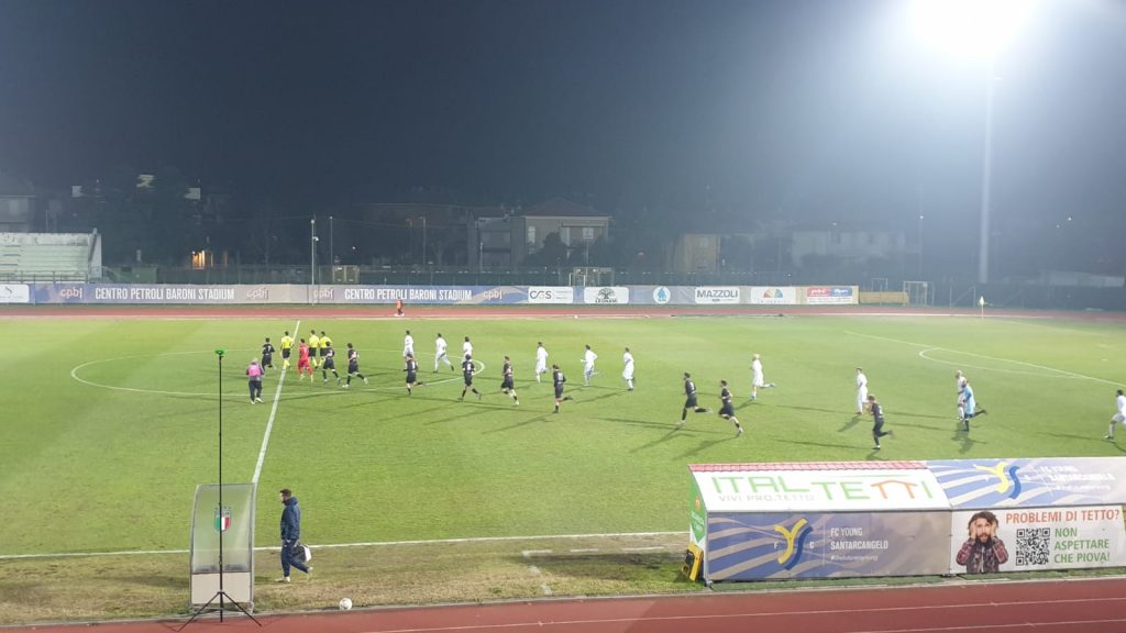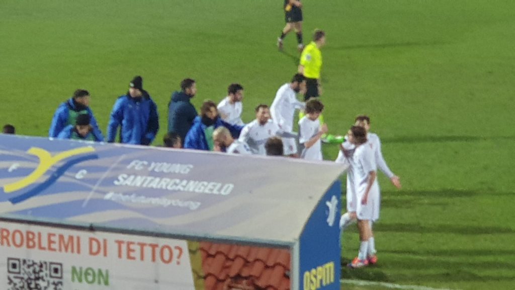 F.C. YOUNG SANTARCANGELO: 1 Hysa, 2 Galassi, 3 Rigoni, 4 Zaghini (24′ st 16 Caverzan), 5 Vukaj, 6 Guidi (1′ st 18 Sorrentino), 7 Fuchi (45′ st 14 Arduini), 8 G. Bianchi (11′ st 15 Canarecci), 9 Cecconi, 10 Zanni (18′ st 20 Bascioni), 11 Nucci. A disp.: 12 Chiarabini, 13 E. Maioli, 17 Parma, 19 Gessi Junior. All. N. Bianchi.