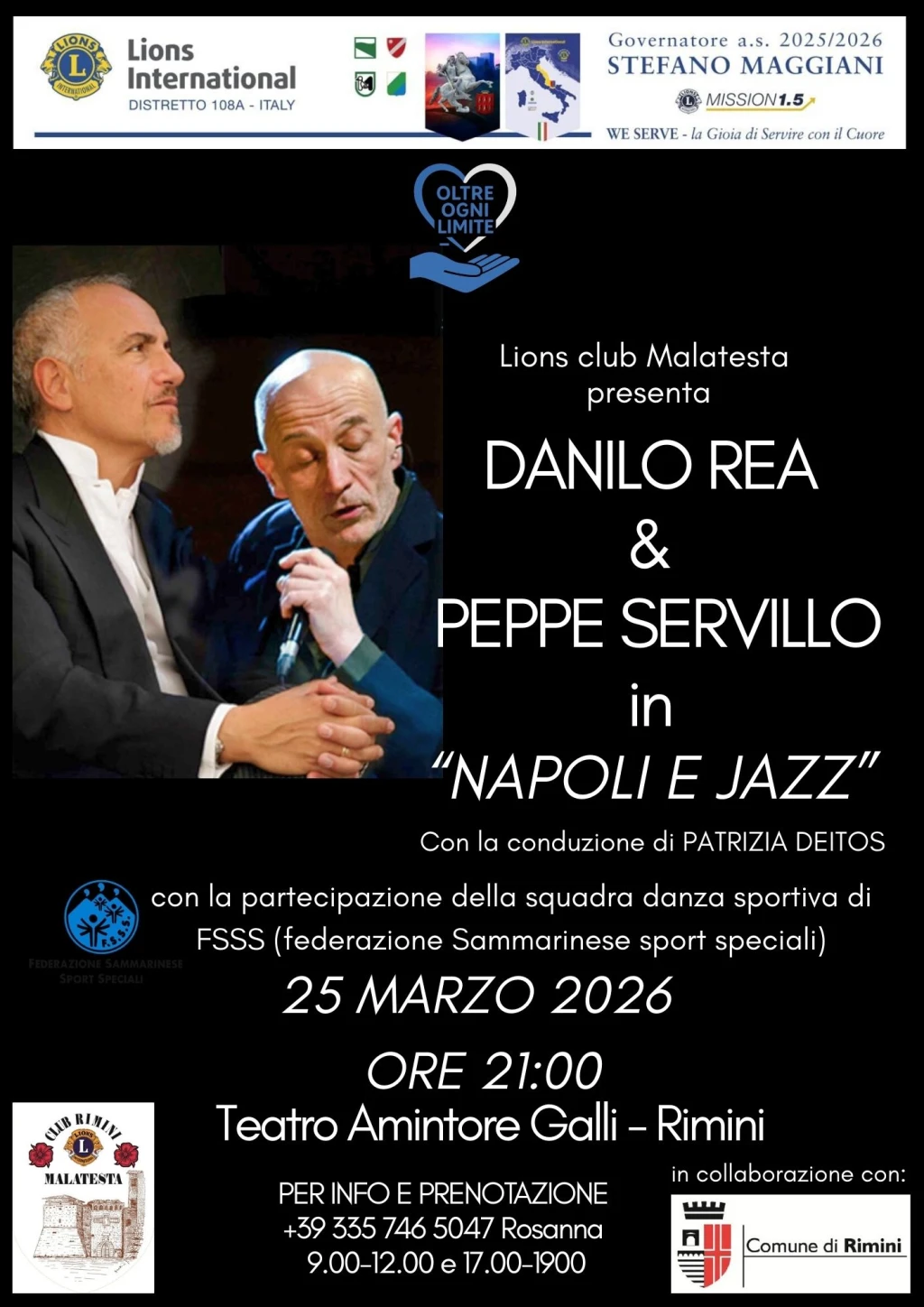 Mercoledì 25 marzo alle 21 il Teatro Amintore Galli di Rimini ospiterà il concerto “Napoli e Jazz”, che vedrà sul palco Danilo Rea, uno dei più importanti pianisti jazz italiani, e Peppe Servillo, voce intensa e interprete tra i più raffinati del panorama musicale nazionale.