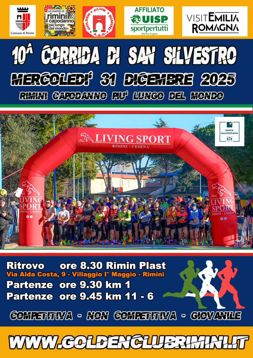 La 10ª Corrida di San Silvestro, evento sportivo inserito nel cartellone di Rimini Capodanno – “Il Capodanno più lungo del Mondo”, si svolgerà sotto l’egida della UISP, con il patrocinio del Comune di Rimini e Visit Emilia Romagna, l'organizzazione è curata dal Golden Club Rimini.