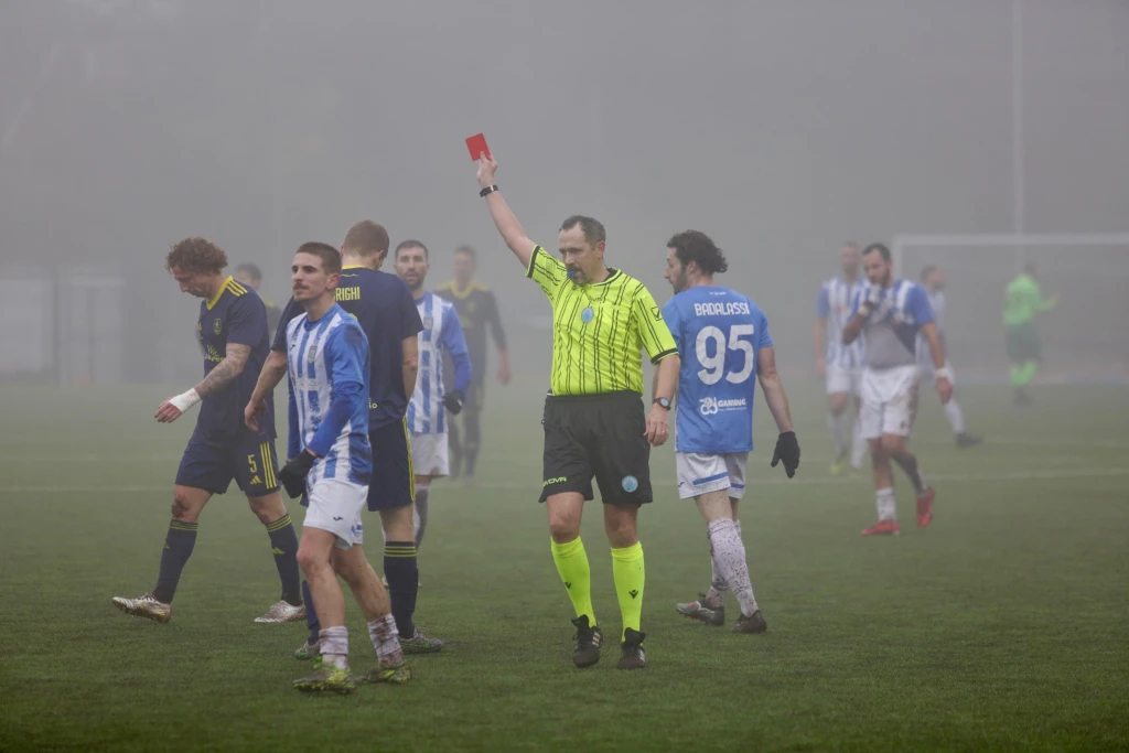 Non tarda a decollare il big match di Montecchio, dove Badalassi e Olcese regalano i primi grattacapi per Vivan e Migani. La gara è vibrante e nella prima porzione manca solo l’acuto in grado di sbloccare il risultato. L’episodio potenzialmente decisivo matura però al 30’, quando Andrea Brighi viene espulso per DOGSO. In precedenza, l’ex Barretta si era fatto pericoloso sugli sviluppi di un corner, mentre al 44’ Gasperoni non sorprende Migani sul primo palo. La ripresa, complice una Fiorita fisiologicamente arroccata, è inizialmente povera di occasioni; la prima matura al 69’ con Bartoli, murata da un avversario in piena area. Il gol si fa attendere quasi dieci minuti ancora e stupisce per le modalità, perché quelli di Ceci – pur in dieci – si fanno trovare tutti nella trequarti avversaria, costringendo Grandoni a stendere Berardi sulla ripartenza del Tre Penne. Nuovo episodio da DOGSO e seconda espulsione diretta per i Gialloblù, che incassano la rete dello 0-1 sullo stesso piazzato di Errico, dal limite dell’area. La Fiorita, nove contro undici, si costruisce comunque la palla del clamoroso pareggio: Semprini sbatte sul montante che salva Migani all’83’. A chiudere definitivamente i conti, nel corso del quinto minuto di recupero, è Bartoli – autore del definitivo 2-0. Il Tre Penne si isola così al terzo posto, infliggendo la prima sconfitta stagionale a La Fiorita.