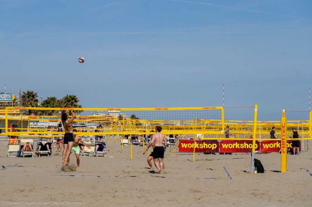 L’atmosfera è quella delle grandi occasioni sportive. Fischi d’inizio, schiacciate, muri e tuffi spettacolari si susseguono senza sosta, mentre centinaia di giovani sportivi animano la spiaggia con energia e entusiasmo. È una vera e propria invasione colorata e festosa, che segna simbolicamente l’inizio della bella stagione.