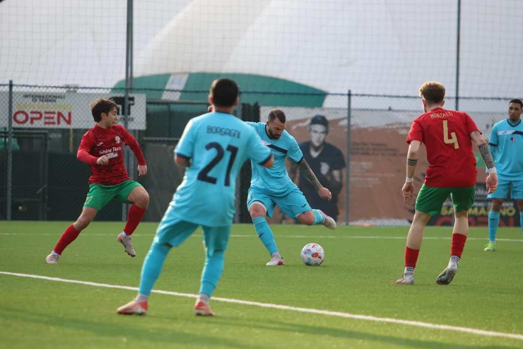 Giornata importante anche per la corsa alla postseason: la sconfitta di ieri del Pennarossa ha permesso a Libertas e San Giovanni di puntare all’ipoteca. Calendario non semplice, con Folgore e Cosmos rispettive avversarie. I Granata conducono a metà partita, dopo aver rischiato sulle iniziative di Islamaj ed Ambrosini – neutralizzati da Cappello e Manzaroli. Sul fronte opposto Rigoni colpisce la base del palo, poi Tomassini spara alto il tap-in a porta vuota. Delusione che diventa esultanza a distanza di dieci minuti: corre il 37’ quando l’attaccante sammarinese recapita al centro per Guidotti, a segno per la quarta volta in sette gare giocate. Prima dell’intervallo Ambrosini e Gjoni dilapidano due grandi opportunità per ristabilire l’equilibrio nel risultato. Nel secondo tempo la squadra di Buda si mette a protezione dell’importante risultato, affidandosi alla grande giornata di Manzaroli per mantenere la porta inviolata. E quando anche l’estremo sammarinese non può nulla, è capitan Morelli a salvare sulla linea di porta sull’ultimo pallone della partita – incocciato di testa da Bufi e destinato all’incrocio dei pali. Vittoria di capitale importante per la Libertas, che sale a +10 sul Pennarossa – ipotecando così l’accesso ai playoff.