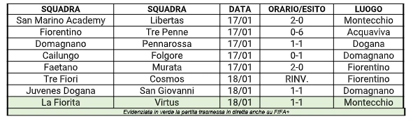 Di seguito il quadro completo della 16° giornata di Campionato Sammarinese 2025-26: