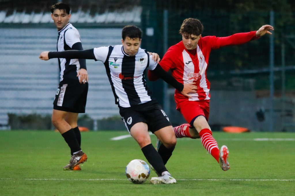 Dopo una prima parte di gara equilibrata, la squadra di Montegiardino riesce a passare poco dopo la mezz’ora. Il destro di Alex Ambrosini dal limite viene inizialmente respinto da Migani ma sulla ribattuta il bomber gialloblu riesce a gonfiare la rete per il vantaggio. Quarto gol nelle ultime due per l’attaccante di Ceci. Passano solo due minuti e la partita si mette ancor di più in salita per la squadra di Berardi: Zazas Sanchez e Guidi fanno scintille in area biancoazzurra, poi è il centrocampista del Tre Penne – ex della gara – che rifila un duro colpo al difensore gialloblu. L’arbitro non ha dubbi ed estrae il rosso per Guidi. Con l’uomo in più, La Fiorita vuole chiuderla e la traversa di Ambrosini sul finale è un chiaro segnale. Il Tre Penne però non vuole mollare e nel recupero è fondamentale Gianluca Vivan che con un riflesso poderoso salva tutto su colpo ravvicinato di De Queiroz – ex San Marino Calcio e nuovo acquisto biancoazzurro. In avvio di ripresa (54’) proteste gialloblu per un tocco in area tra Affonso e Migani, ma l’arbitro William Villa lascia giocare. La gara è sempre in bilico e al 71’ è ancora Vivan a salvare i suoi: cross perfetto di Vandi per la testa di Dormi che si infila benissimo tra le maglie gialloblu, il fantasista la mette all’angolino ma Vivan vola nuovamente e la tocca con la punta delle dita. Ceci e suoi decidono di dare lo strappo decisivo e al 78’ la partita si chiude definitivamente: Alberto Riccardi va in profondità per Jacopo Semprini che arrivato in area serve vicino Vitaioli che controlla e la mette all’angolino per il 2-0. È il gol della sicurezza per La Fiorita che fa undici vittorie in campionato – la terza di fila – e resta sempre imbattuta. Tre Penne che invece si ferma così dopo tre successi consecutivi.