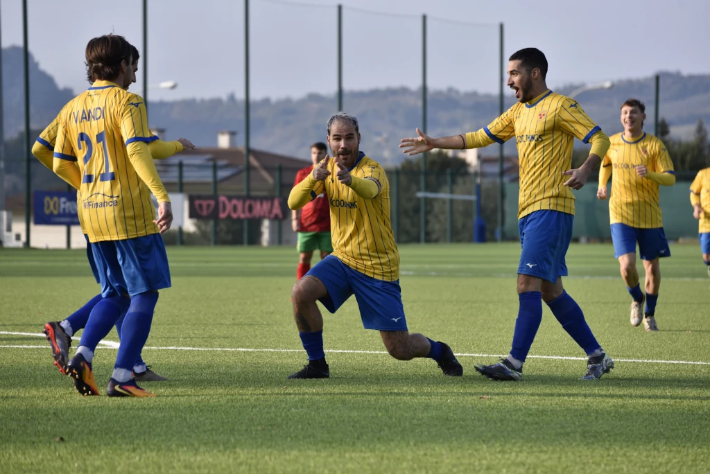 Pareggio all’ultimo secondo quello tra Libertas e Pennarossa, unico segno ”X” tra le gare delle 15:00. Poche emozioni nella prima frazione di Montecchio. Bisogna aspettare il minuto 36 quando Azzurro recupera sulla trequarti e serve in verticale Pintore che calcia bene di prima andando a sorprendere Manzaroli per il vantaggio biancorosso. La risposta della Libertas arriva poco dopo (43’) con il palo esterno colpito da Quarta. Il vantaggio del Pennarossa resiste sino al 76’ quando la Libertas riesce a rimettere tutto in equilibrio. Cross dalla destra di Nigro, ottima sponda di Capparelli che la appoggia benissimo per Quarta che dal limite buca Lazzarini. Reagisce alla grande il Pennarossa che al 82’ rimette il naso avanti: ottimo lavoro di Pintore che dopo il gol serve l’assist decisivo per Tumidei lanciandolo dalla propria metà campo, per l’attaccante sammarinese è poi facile battere Manzaroli nel uno contro uno. Sembra fatta per la squadra di Ricchiuti ma all’ultima azione la Libertas riesce ancora a segnare: tutti in-the-box sul corner di Morelli, nella mischia sbuca Pezzella che fa 2-2 al 97’.