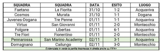 Questo è il quadro completo dell’ottava giornata di Campionato Sammarinese: