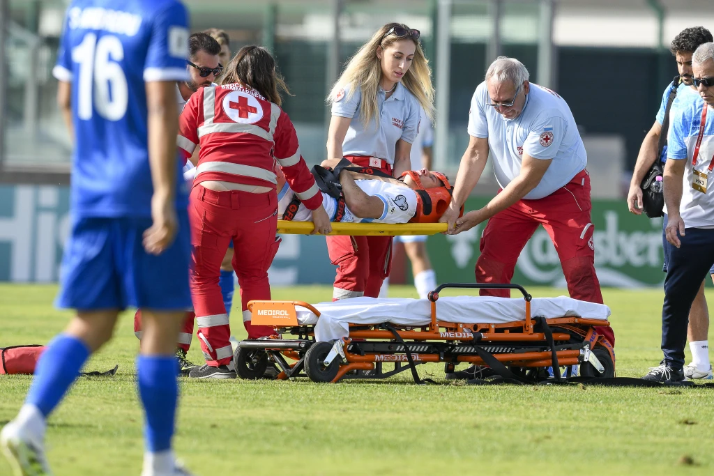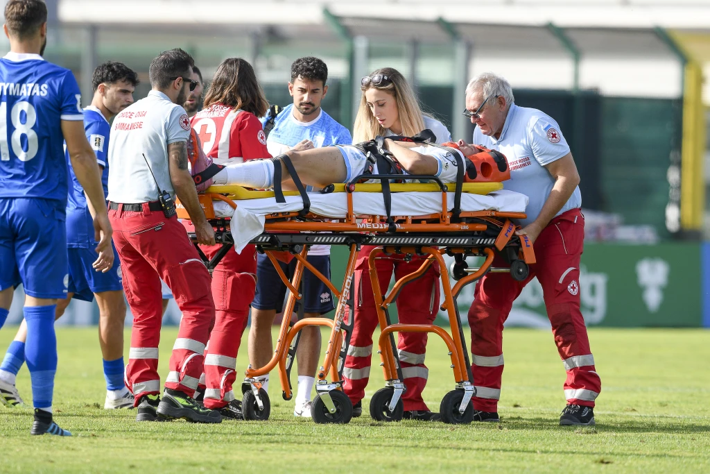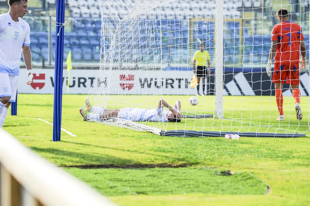 I Titani approcciano la partita con grande intensità ed aggressività, dovendo però registrare dopo appena 200” una grave perdita. Sugli sviluppi di un pallone intercettato nella metà campo cipriota da Lorenzo Capicchioni, Contadini è vittima di un duro contrasto che lo costringe a lasciare il campo in barella, accompagnato dagli applausi di tutto il San Marino Stadium. Non è ancora il 10’ e Cevoli deve spendere la prima delle cinque sostituzioni a disposizione inserendo Berardi. All’immediata ripresa del gioco Cipro affonda e marca il vantaggio con Loizou – l’approfondito controllo VAR conferma la regolarità del vantaggio ospite. Lo stesso attaccante ha la palla del raddoppio al 27’, smarcato davanti a Colombo in seguito ad una galoppata di Tzionis per sparare a lato col sinistro. Ciononostante, San Marino continua a giocare in maniera aggressiva e propositiva – facendosi vedere in posizione avanzata con Lazzari, Riccardi e Nanni pur peccando di precisione nell’ultimo passaggio. Poco dopo la mezz’ora Cipro torna a provarci con due bordate di Pileas e Kastanos: Colombo risponde alla prima, accompagnando sopra la traversa la successiva. Al 37’ ci prova Berardi: messo in moto da Capicchioni, converge sul mancino per calciare sporco dai venti metri. Un minuto più tardi Colombo ha il riflesso giusto sulla stoccata di Charalampous. In coda al primo tempo, San Marino ha una grandissima occasione per impattare: Nanni sfonda a sinistra e guadagna il fondo, incrociando un tiro-cross sul secondo palo che Berardi arriva a sfiorare sottomisura senza riuscire a direzione in porta. Il robusto recupero si conclude con un destro alto di Charalampous dopo l’efficace sponda di Pittas in area di rigore. Nell’extra-time anche il cartellino giallo comminato a Lorenzo Capicchioni, che salterà per squalifica la trasferta in Romania.