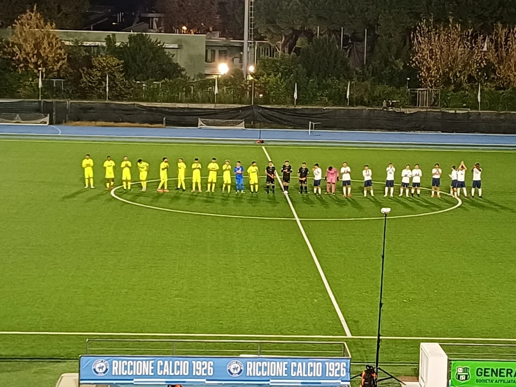 RICCIONE CALCIO 1926: 1 Crescentini, 2 Difino, 3 Giunchi, 4 Manfroni, 5 Sottile, 6 Diop (15' st 16 Greco), 7 Serafini (40' pt 18 Bellavista), 8 Mussoni, 9 Paolini (15' st 19 Ambrosini), 10 Pierri (31' st 20 Groppi), 11 Tonini (41' st 13 Gabriele). A disp.: 12 Barbanti, 14 Fraternali, 15 Labudiak, 17 Della Rosa). All. Mugellesi.