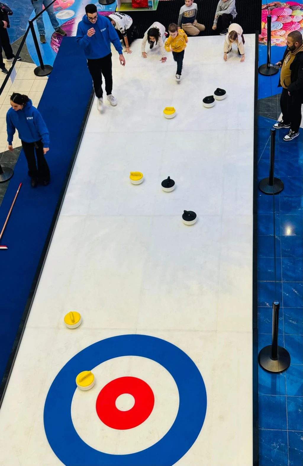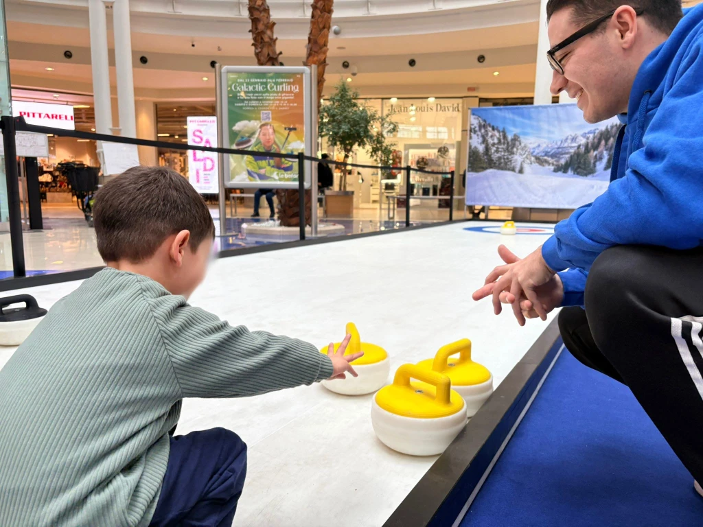 La pista di curling delle Befane è pensata in particolare per i più piccoli, che si stanno avvicinando a questo sport in modo ludico e coinvolgente.