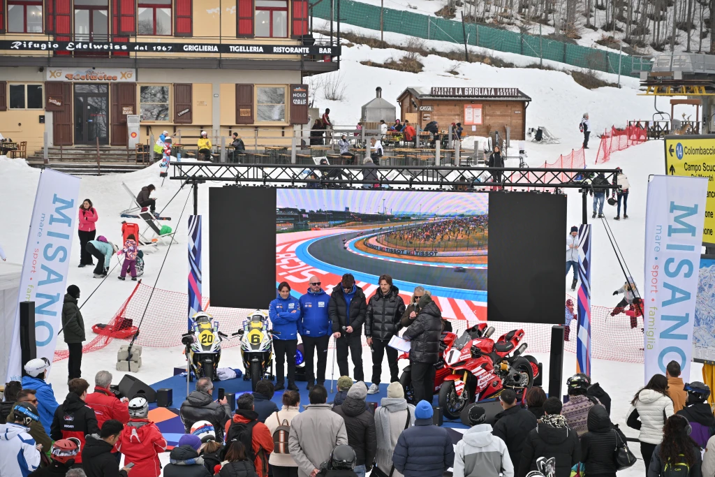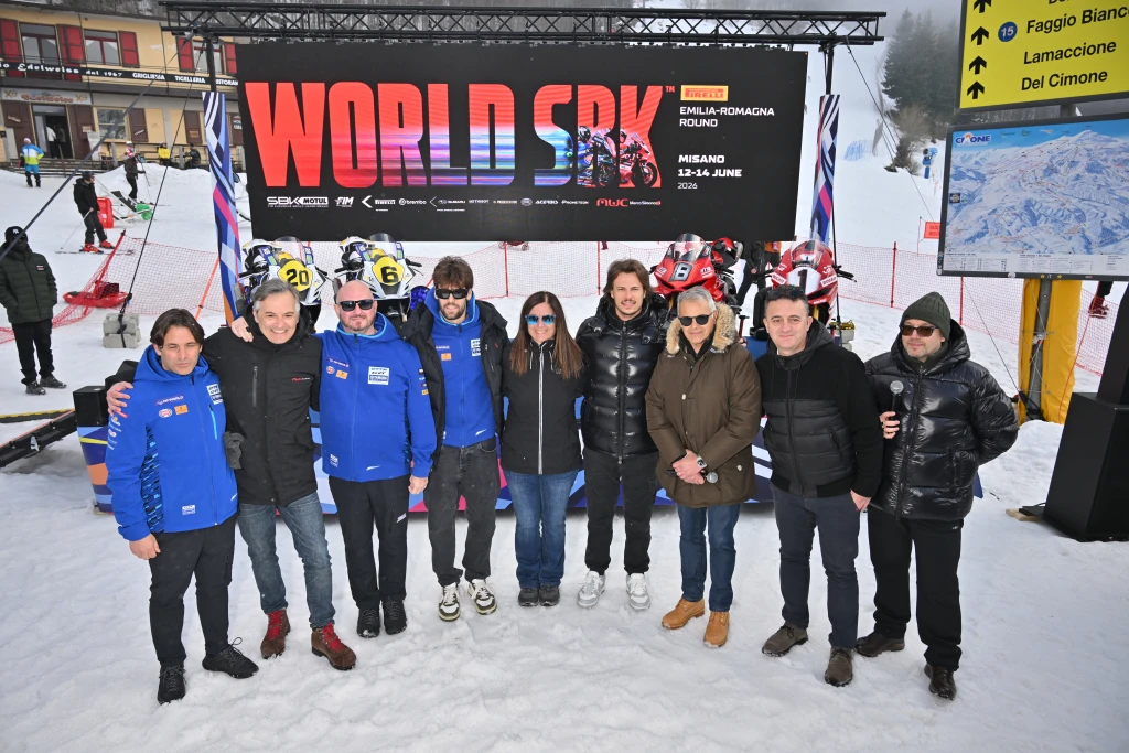 È stato presentato questo pomeriggio, nell’insolita cornice dell’Appennino Emiliano, il calendario 2026 del Misano World Circuit. Grazie alla sinergia con la Regione Emilia-Romagna, e con il prezioso supporto del Consorzio Stazione invernale del Cimone, l’evento che da tradizione apre la nuova stagione del “Marco Simoncelli” si è svolto nella Piazzetta di Passo del Lupo (Sestola), a 1.550 metri d’altitudine, con il Monte Cimone a fare da suggestivo fondale.