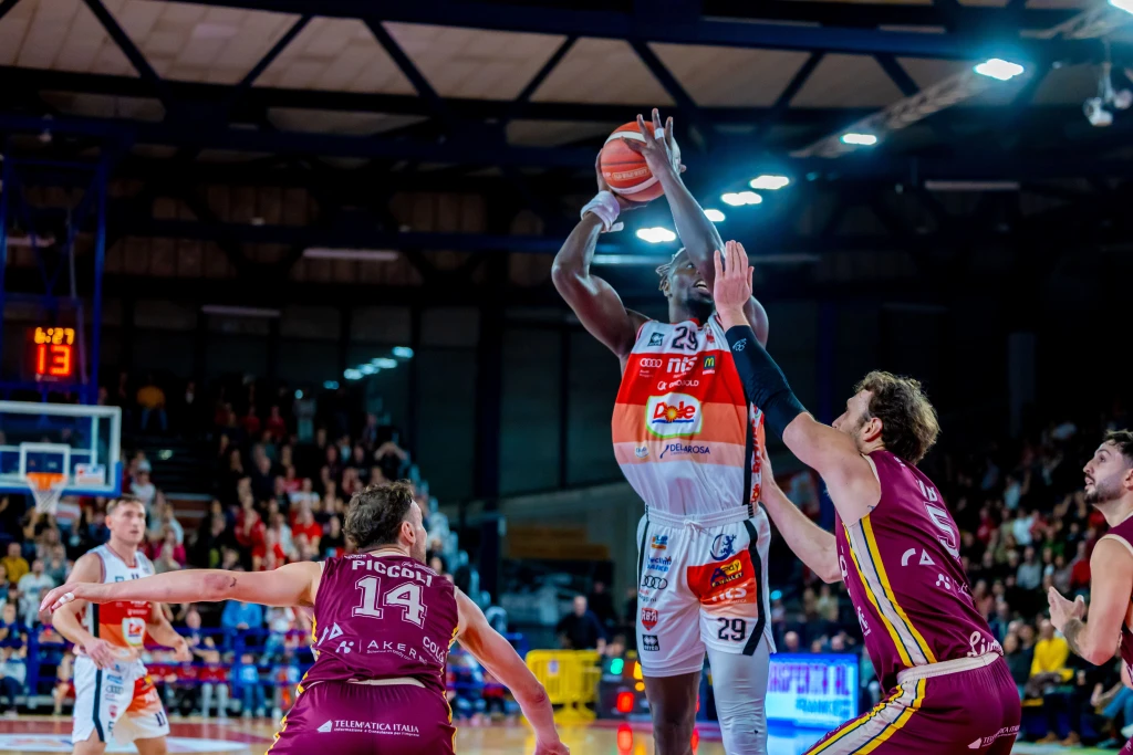 Dole Basket Rimini: Pierpaolo Marini 16 (4/7, 2/5), Gora Camara 11 (4/10, 0/0), Gerald Robinson 10 (1/2, 2/5), Ivan Alipiev 8 (1/4, 2/5), Davide Denegri 7 (2/7, 1/5), Assane Sankare 7 (2/5, 1/2), Giacomo Leardini 6 (3/5, 0/1), Luca Pollone 6 (0/0, 2/3), Alessandro Simioni 6 (3/5, 0/2), Valentin Georgescu 0 (0/0, 0/0), Thomas Della chiesa 0 (0/0, 0/0), Giovanni Tomassini 0 (0/0, 0/0).