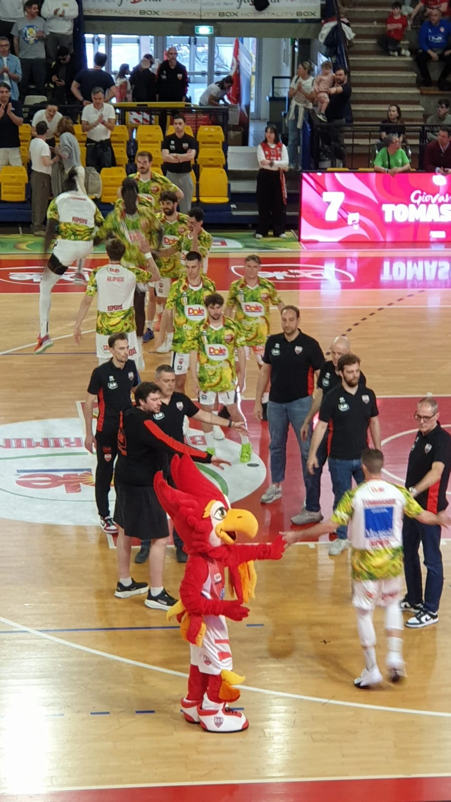 Per Rimini 14/28 (50%) da due, 6/11 (54,5%) da tre e 4/7 (57,1%) ai liberi. Per la Gemini 10/18 (55,6%) da due, 3/10 (30%) dall'arco e 9/14 (64,3%) dalla lunetta. 24-13 per la Dole a rimbalzo.