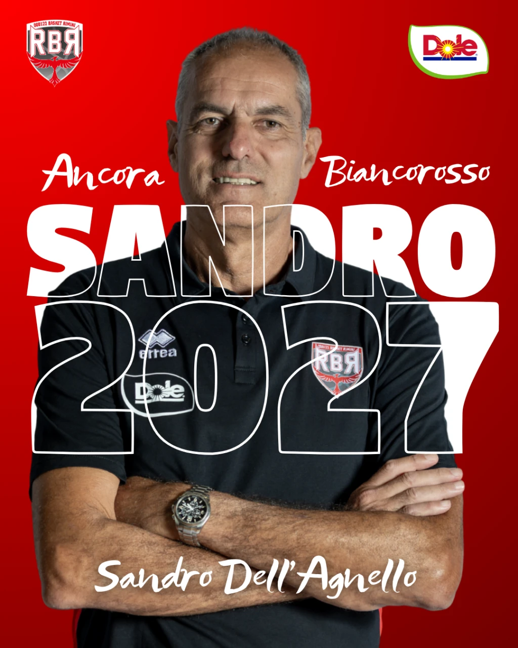 Sandro Dell'Agnello sarà l'allenatore della Dole Basket Rimini anche nella stagione 2026/'27, con opzione per l'anno successivo.