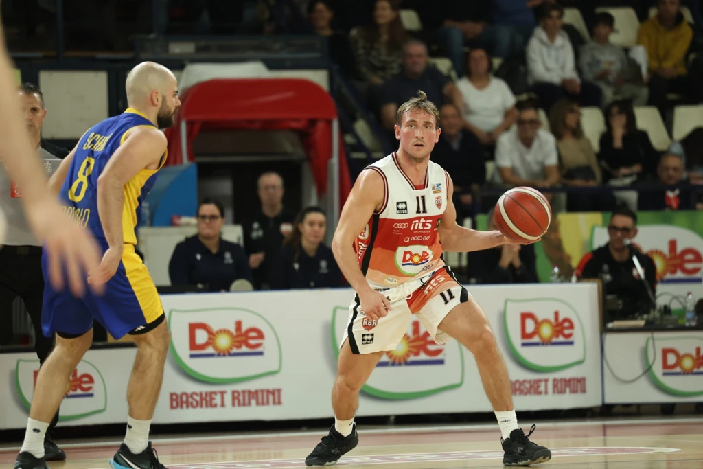 È ancora Torino a cominciare meglio, con un 1-11 che vede protagonista la panchina (Tortù, Stazzonelli e Severini) e significa nuova sospensione riminese dopo 14’ di gioco (23-31). Rimini continua a perdere troppi palloni e Massone in contropiede fa +10, ma la Dole risponde con un 5-0 (Marini e Camara), e allora anche coach Moretti esaurisce i timeout al 15’ (28-33), trovando però Denegri a riportare Rimini a -3 e una stoppata da highlights di Ogden. Camara allunga il parziale, chiuso dalla tripla di Schina (32-36), poi le percentuali si abbassano, e al 19’ è 35-38. Leardini a rimbalzo d’attacco fa -1, poi un’acrobazia di Marini regala ai padroni di casa il vantaggio all’intervallo, 39-38.