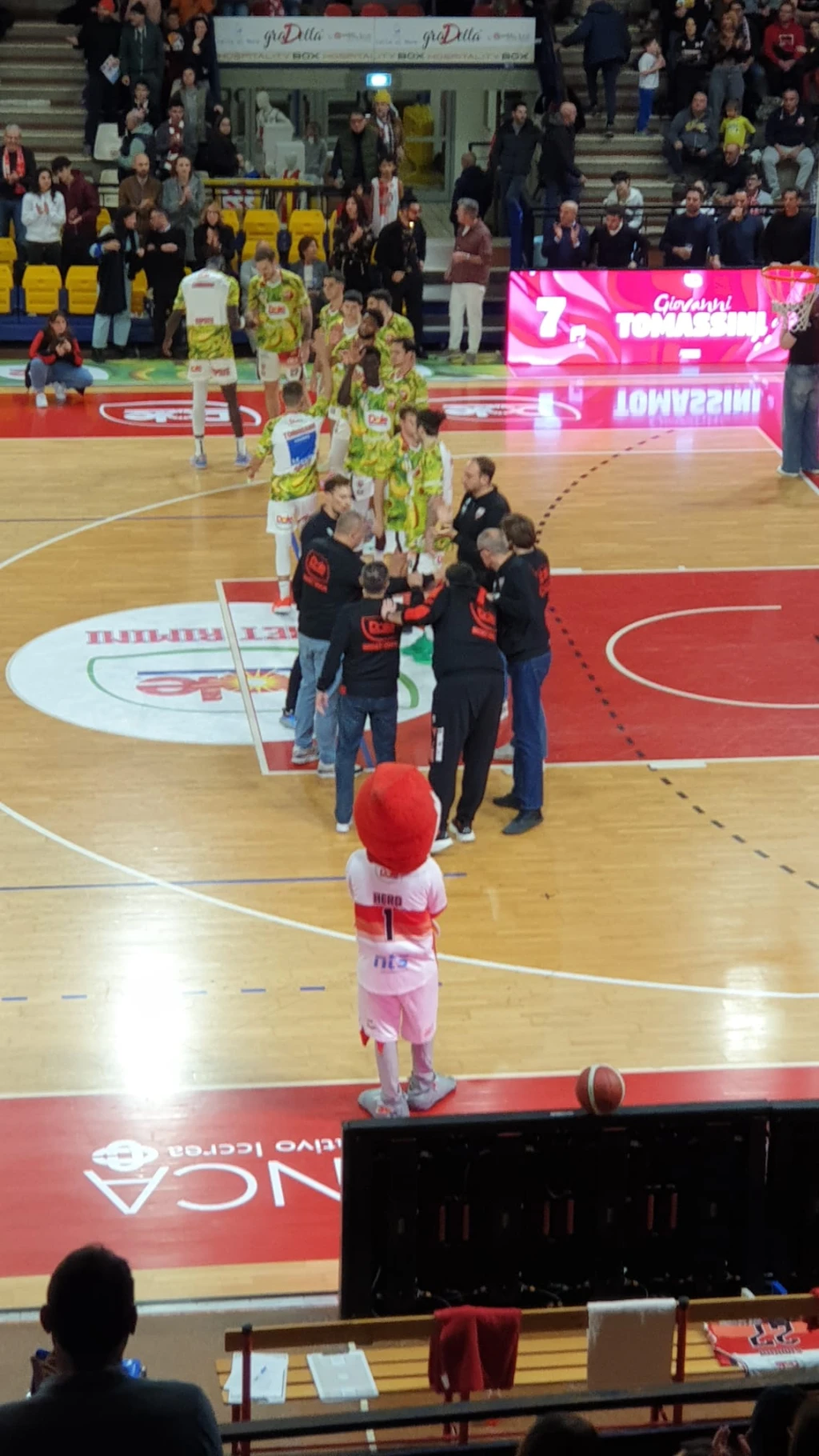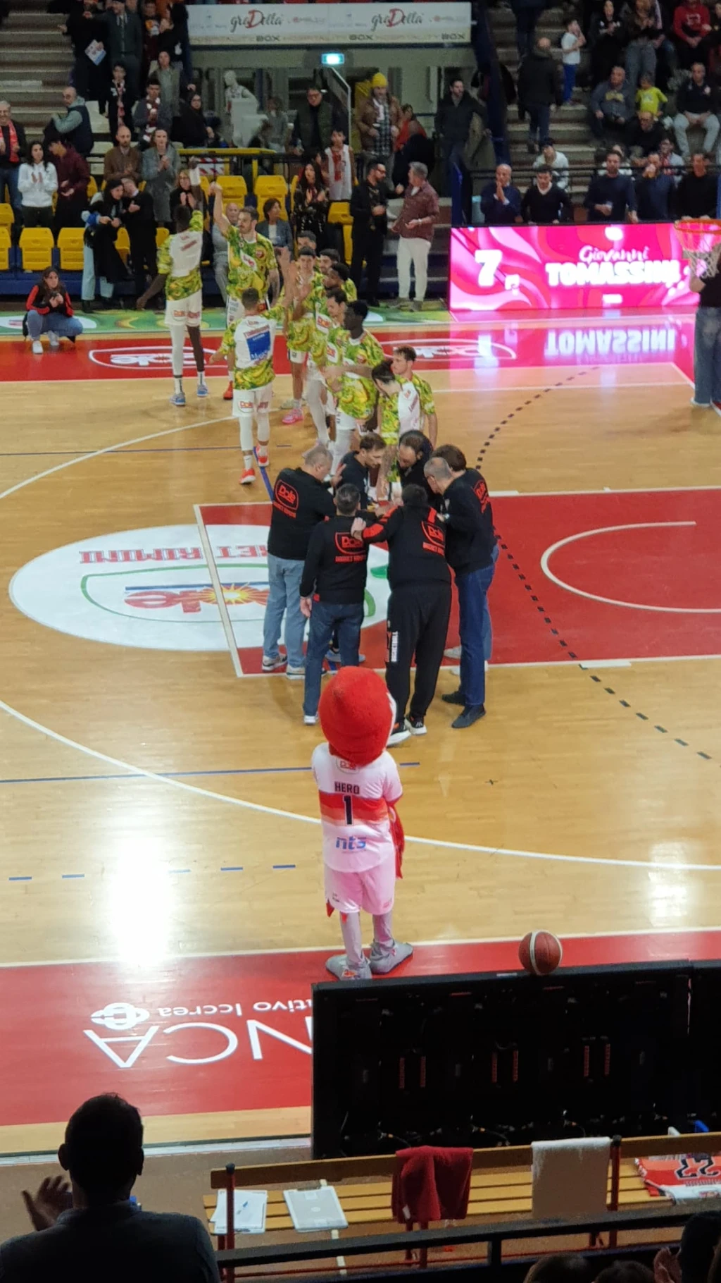 Partono meglio gli ospiti, con un 1-5 firmato Bruttini-Teague, mantenendo il vantaggio anche sul 3-7 e sul 6-9; un canestro di Allen convince coach Dell’Agnello a fermare il tempo al 5’ (6-11) con il numero 10 gialloblu che realizza anche l’aggiuntivo. All’uscita dal timeout segnano Marini e Teague, poi la Dole torna a un possesso di svantaggio con Denegri (2/2) e Leardini (tripla), con un libero di Cusin a fare 13-16. La Dole, comunque, non si scompone: Denegri pareggia con una tripla in transizione, poi Marini fa and-one e arriva la sospensione anche per gli ospiti (18-16 all’8’). Dopo l’aggiuntivo c’è la tripla di Tomassini, ma anche quattro punti in fila di Allen per il 22-20 Rimini che chiude il primo quarto.