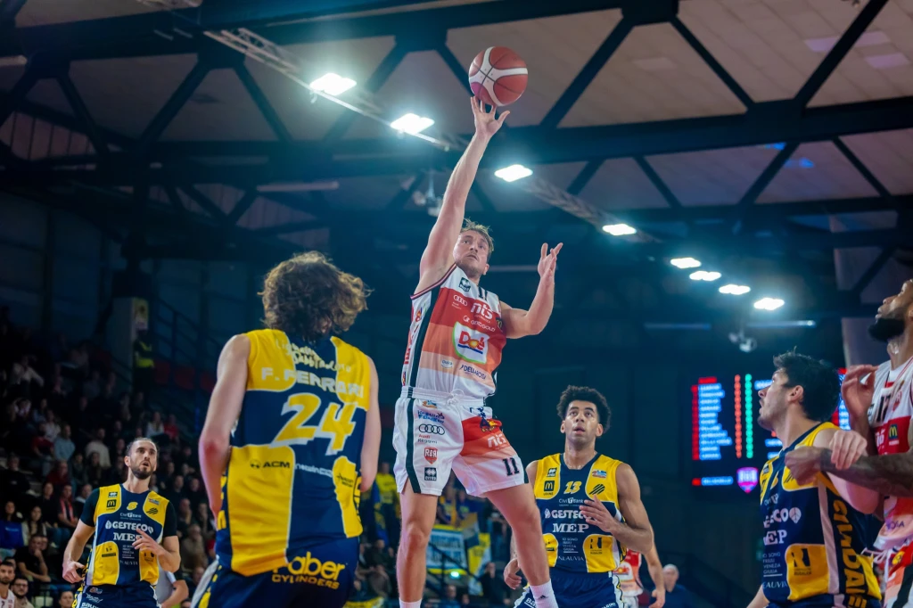 Dole Basket Rimini: Pierpaolo Marini 22 (4/6, 4/9), Gora Camara 17 (6/8, 0/0), Mark Ogden 14 (4/7, 2/8), Davide Denegri 11 (2/4, 2/8), Luca Pollone 3 (0/0, 1/1), Giacomo Leardini 3 (1/3, 0/1), Giovanni Tomassini 2 (1/2, 0/6), Alessandro Simioni 2 (1/1, 0/1), Assane Sankare 0 (0/0, 0/2), Valentin Georgescu 0 (0/0, 0/0), Thomas Della chiesa 0 (0/0, 0/0).