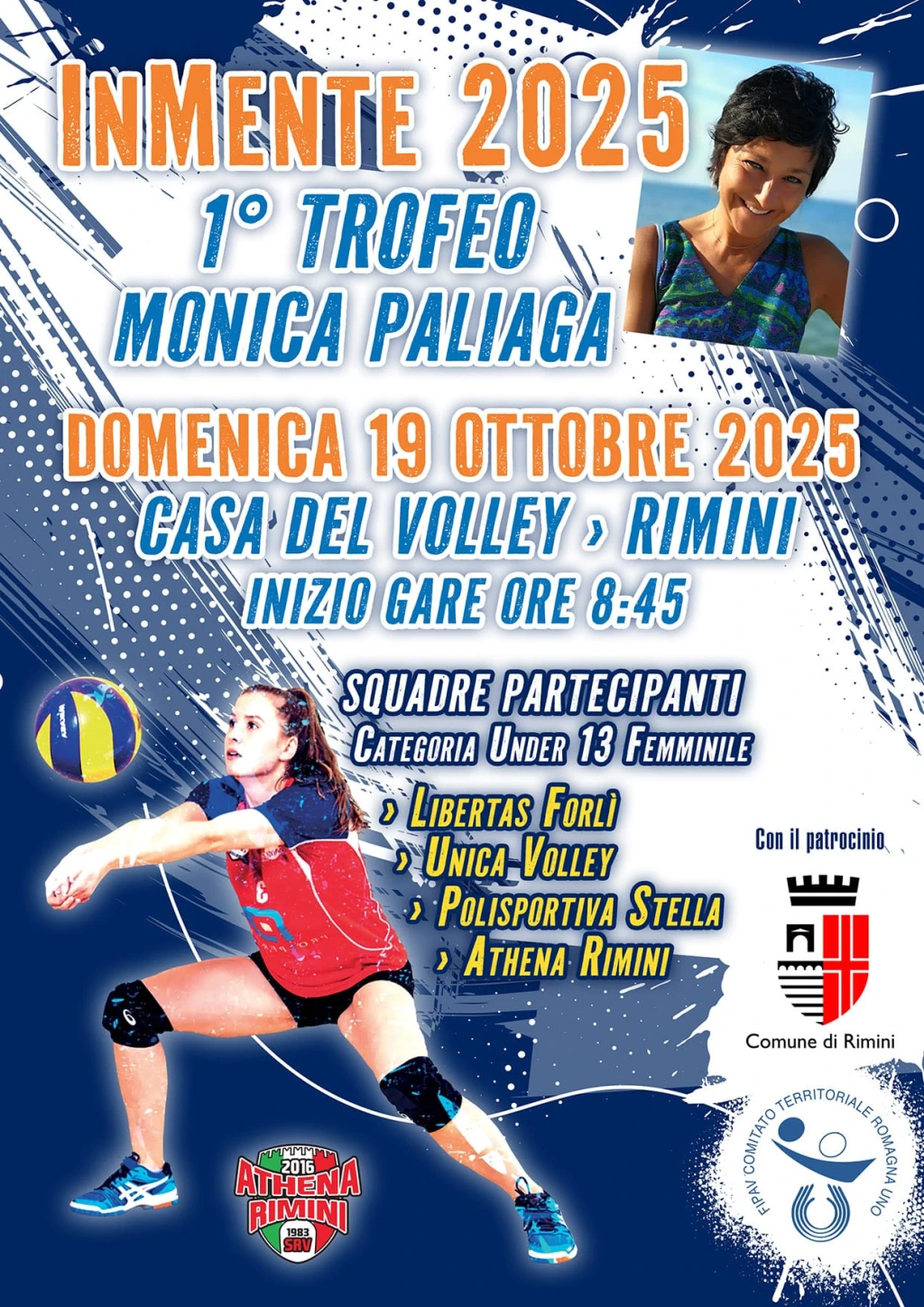 La società Athena Rimini Volley organizza per domenica 19 ottobre alla Casa del Volley, a partire dalle ore 8:45, il 1° Memorial "Monica Paliaga".
