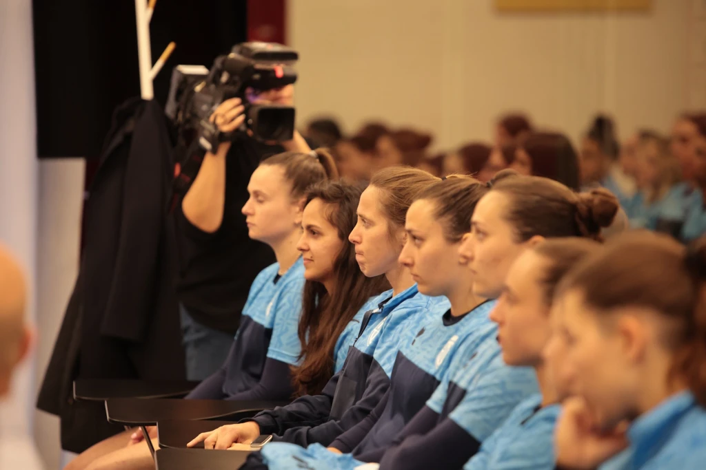 Al desk anche i Consiglieri Federali Gianluca Angelini e Pierangelo Manzaroli, Responsabili dell’Area Femminile della FSGC. “Questa giornata si inserisce in un momento cruciale per il calcio sammarinese – spiega Manzaroli -. Nel 2026, per la prima volta, scenderanno in campo due Nazionali per impegni UEFA: l’Under 19, che di recente ha ospitato il Round 2 delle qualificazioni, e l’Under 16, che a maggio disputerà il Torneo di Sviluppo in Macedonia del Nord. L’attività delle Nazionali femminili avviata due anni fa con il Torneo di Sviluppo Under 16 oggi fa un altro passo fondamentale. La Nazionale maggiore femminile non è solo una squadra, ma un progetto di crescita, inclusione e futuro. Vogliamo dare opportunità concrete alle ragazze, valorizzare il lavoro degli ultimi dieci anni fatti in Academy e costruire un’identità forte, dentro e fuori dal campo. Sappiamo che serviranno tempo e impegno, ma la direzione è chiara. C’è un movimento in forte crescita sempre più famiglie portano le bambine più piccole al campo per partecipare nuovi progetti legati al calcio di base. Un esempio sono gli incontri di UEFA Playmakers, l’attività invernale indoor e la multidisciplinarità introdotta quest’anno con l’inserimento del nuoto nei nostri programmi sportivi dedicati all’attività di base. Tutto ciò sta riscuotendo grande apprezzamento e riteniamo che questo giorno storico per lo sport sammarinese possa valorizzare in maniera concreta l’entusiasmo crescente e portare anche a una svolta culturale e sportiva nel valutare correttamente il calcio femminile, come avviene già da tempo nel resto d’Europa e nel mondo. La scelta del Commissario Tecnico Giulia Domenichetti e del suo staff si inserisce pienamente in questa visione, perché esperienza, competenza e duttilità rappresentano un valore aggiunto fondamentale per tutto il progetto. Oggi non presentiamo solo una Nazionale: presentiamo una visione per il futuro del calcio femminile di San Marino.”