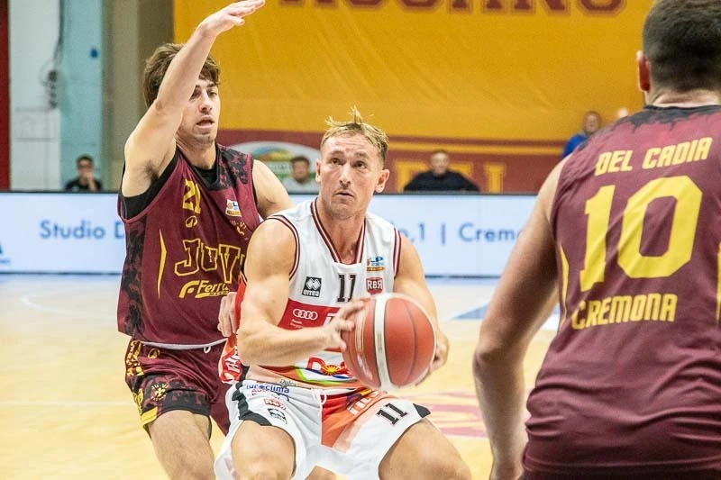 In trasferta la Dole va. Dopo il successo dell’esordio sul parquet dell’Urania Milano, i biancorossi trovano la seconda vittoria della stagione superando al PalaRadi di Cremona la Ferraroni JuVi con il risultato finale di 71-84. I ragazzi di coach Sandro Dell’Agnello sono bravi a indirizzare la disputa a proprio favore nel cuore della gara: decisivo un parziale di 17-0 nel corso del secondo periodo, con il vantaggio che lievita nella ripresa fino al +21 in più occasioni. Qualche patema d’animo di troppo negli ultimi dieci minuti, ma Rbr controlla il ritorno di fiamma degli avversari con determinazione. Da segnalare la presenza di un centinaio di supporter biancorossi.