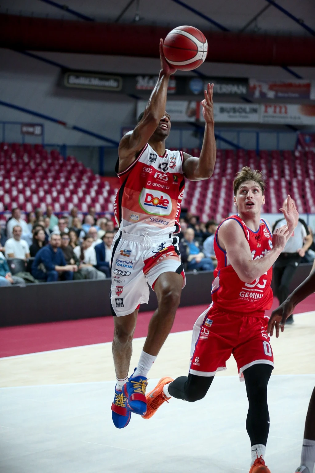 Per la Gemini 16/35 da due, 8/19 da tre e 17/22 dalla lunetta. Per la Dole 25/43 da due, 10/25 dall'arco e 12/17 ai liberi. Cinque i romagnoli in doppia cifra: Ogden 19, Robinson 17, Marini 16, Simioni 14 e Denegri 10.