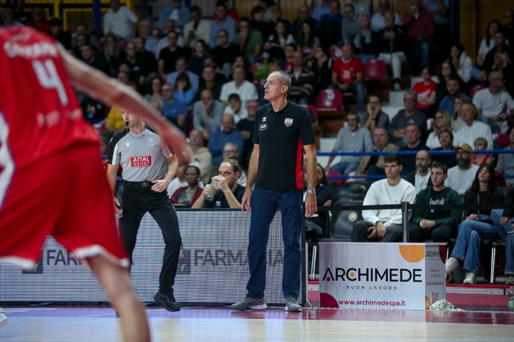 Coach Ferrari sceglie Valsecchi, Curry, Aromando, Bonacini e Galmarini. La Dole replica con Robinson, Denegri, Marini, Ogden e Simioni. I biancorossi, dopo la strigliata nel dopo gara contro Bergamo, partono con la corretta intensità: una Dole energetica apre il match con la tripla di Marini poi vola con un break significativo fino al 10-0 con il 3/3 dalla lunetta di Ogden. A sbloccare i padroni di casa è Galmarini 2-10, ma Robinson da tutto libero va a depositare la tripla del 2-13. Gli uomini di coach Dell’Agnello prendono il controllo del match con scrupolosità: dopo 6’ Rimini va a inserire il 20° posto nel pallottoliere 7-20 con Robinson. Nel finale del quarto la Dole allunga ulteriormente 14-27 con la tripla di Denegri, poi capitan Tomassini dice 3+1 per il +15 (16-31) con cui si chiude la prima frazione. Rbr bene al tiro (6/11 da due, 4/6 da tre) e super nel controllo dei rimbalzi 11-5.