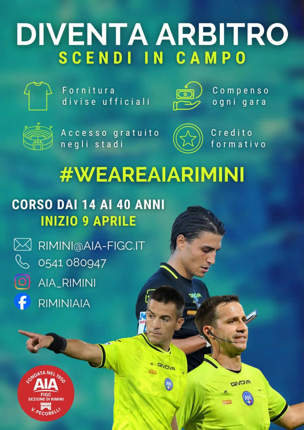 Per maggiori informazioni www.aiarimini.com, rimini@aia-figc.it, tel. 0541 080947.