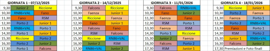 Il torneo si svilupperà in quattro domeniche: il 7 e 14 dicembre e l'11 e 18 gennaio, nella palestra della scuola primaria Spadarolo (via Mirandola, 2 - Rimini).