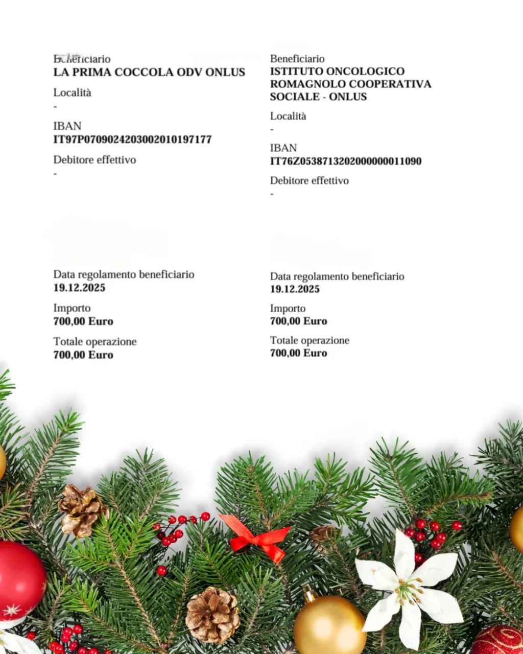 Durante la tradizionale cena natalizia del gruppo arbitri, la lotteria benefica – un’iniziativa portata avanti con orgoglio da anni – ha permesso di raccogliere 1.400 euro, destinati a "La Prima Coccola" e all’Istituto Oncologico Romagnolo, a sostegno delle loro preziose attività sul territorio.