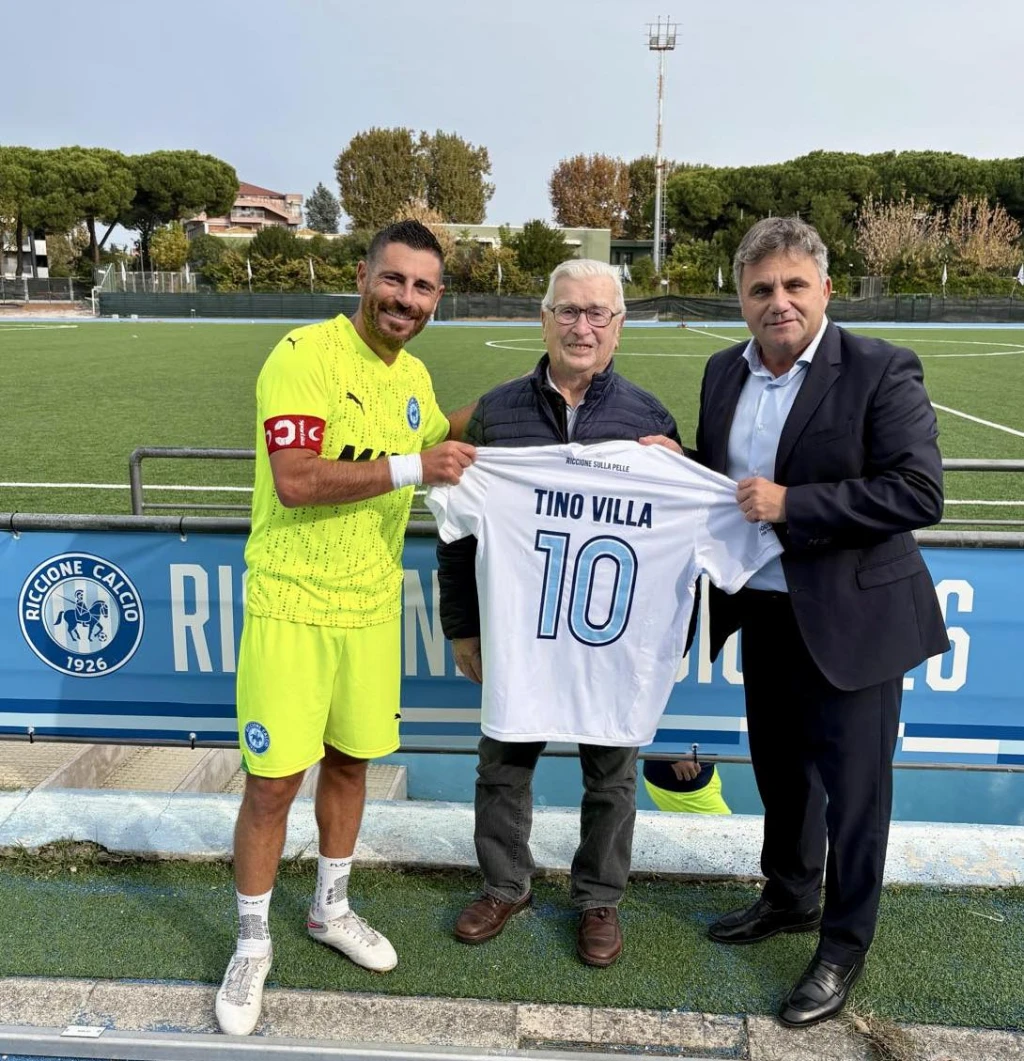 La Riccione Calcio 1926 prima del calcio d'inizio della partita interna con il Civitella (vinta poi 2-0 dai padroni di casa, leggi notizia) ha premiato, con la consegna di una maglia ufficiale personalizzata, Tino Villa, 95 anni, il tifoso biancazzurro di più lungo corso.