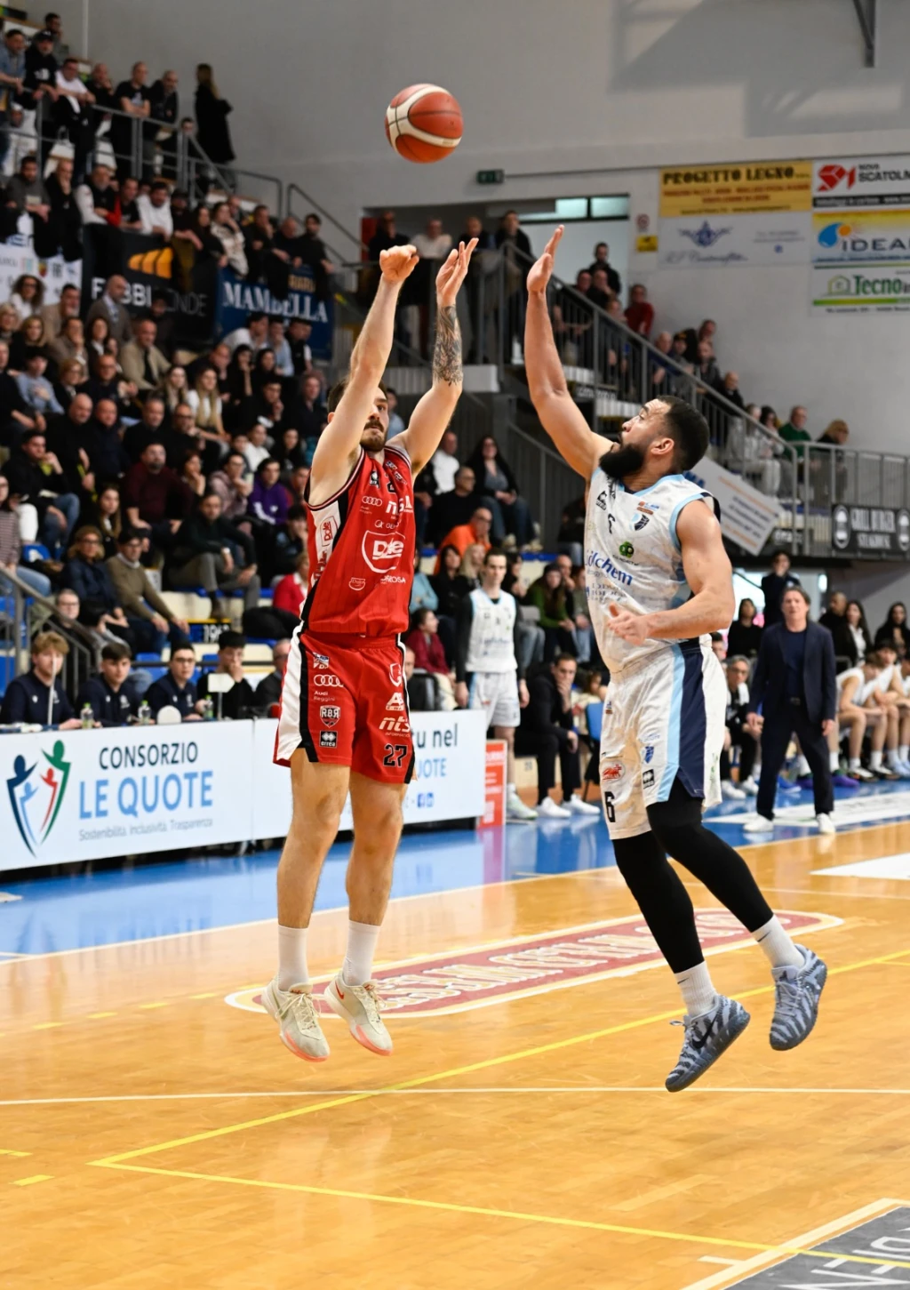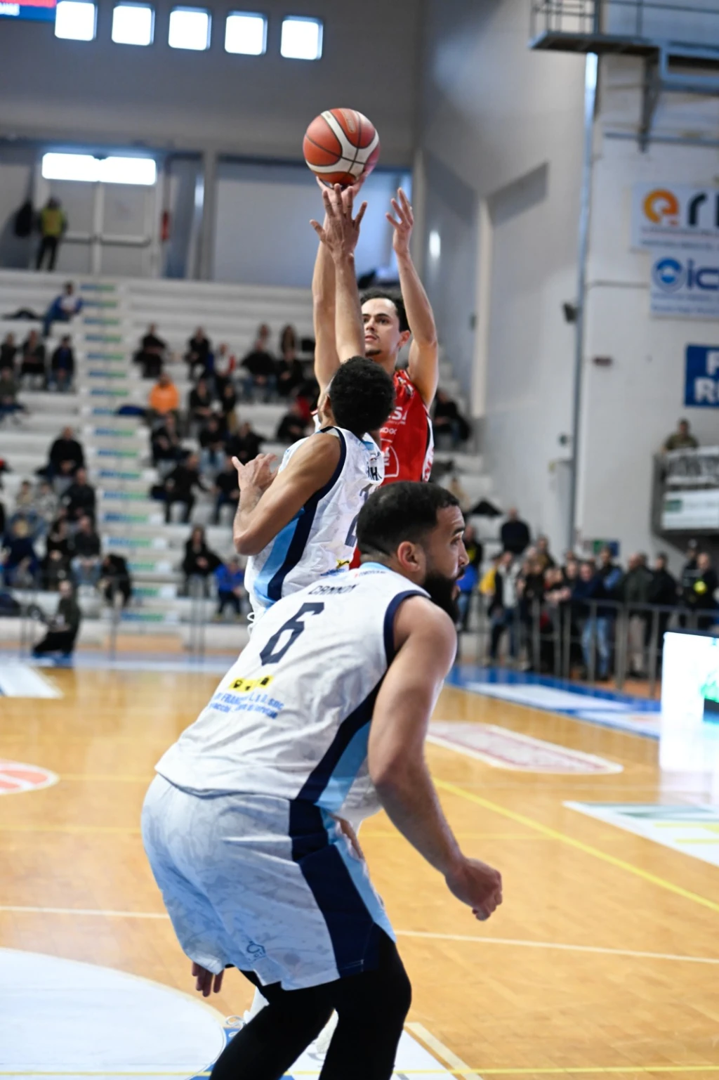 Per Roseto 13/21 da due, 6/9 da tre e 16/18 ai liberi. Per Rimini 10/19 da due, 8/19 dall'arco e 5/10 dalla lunetta. 21-13 per i padroni di casa a rimbalzo.
