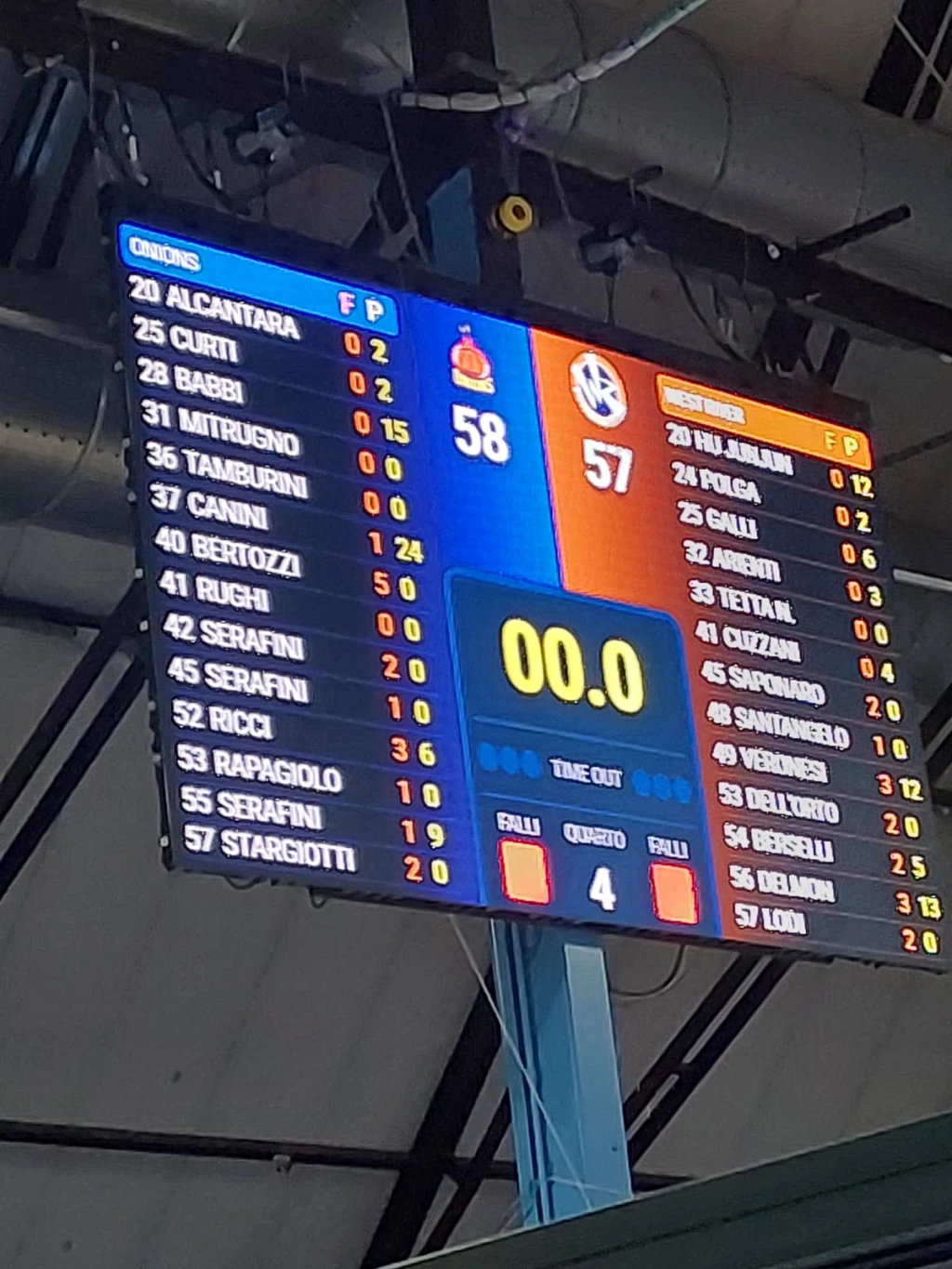 Parziali: 16-17, 27-30, 42-38, 58-57.