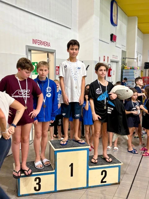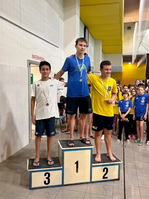 Ottime le prestazioni per i più piccoli, capaci di affrontare la gara con entusiasmo e spirito competitivo. Per gli Esordienti B Marzia Talledo conquista il bronzo nei 50 dorso, Noah Pizzirani l’oro nei 50 farfalla e l’argento nei 100 misti. Anche gli Esordienti A hanno dimostrato maturità e solidità tecnica: Matias Pizzirani guadagna il terzo posto nei 100 dorso così come Diego Profico nei 100 farfalla.
