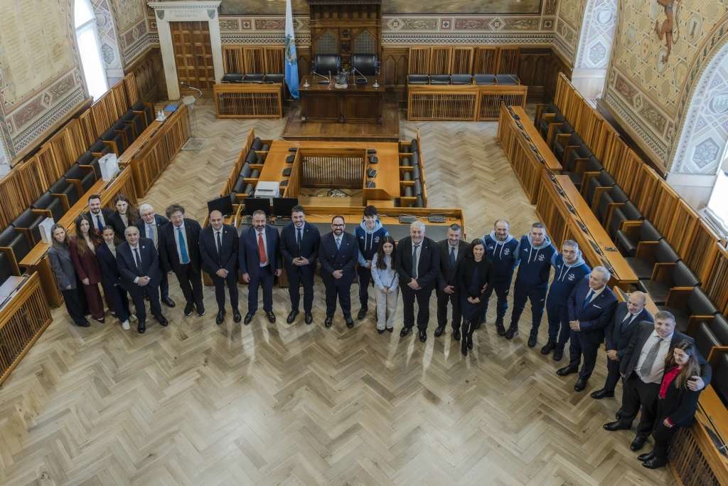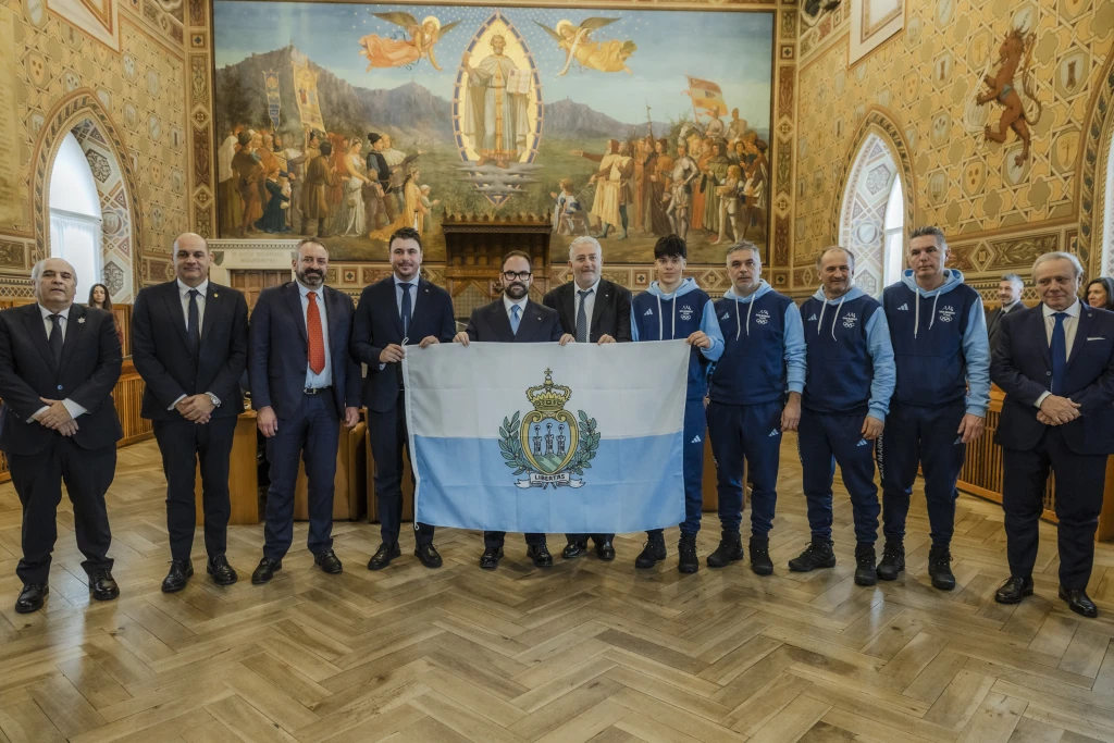 Rafael Mini e tutta la delegazione sammarinese che parteciperà alle Olimpiadi invernali di Milano-Cortina 2026 è stata ricevuta in udienza a Palazzo Pubblico dai Capitani Reggenti, Matteo Rossi e Lorenzo Bugli. Mini è stato accompagnato dal Capo Missione, Gian Luca Gatti; il tecnico, Stefano Sentieri; l’ufficiale di squadra Bruno Guidi e l’Attaché Olimpico Gianni Cardelli, oltre al presidente del CONS, Christ