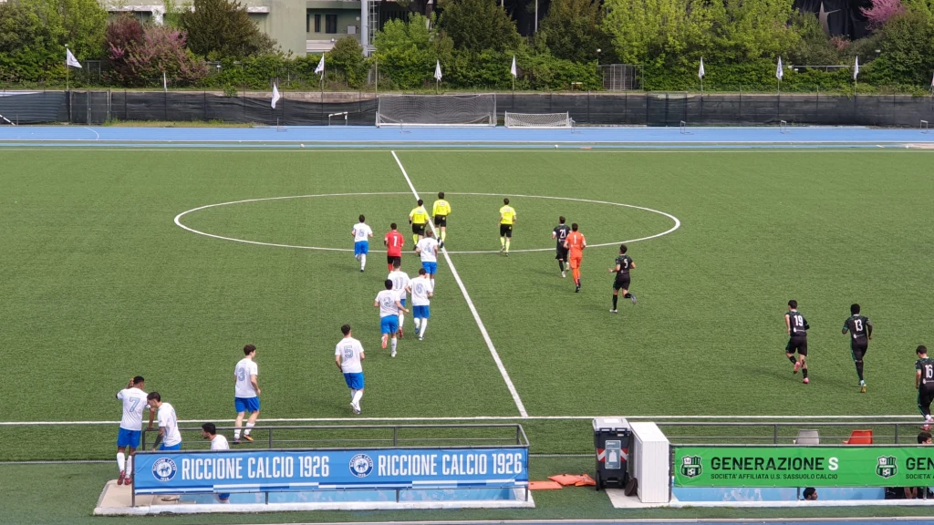 RICCIONE CALCIO 1926: 1 Crescentini, 2 Difino (35' st 13 Labudiak), 3 Giunchi, 4 Matteoni (1' st 14 Sottile), 5 Manfroni, 6 Ubaldi, 7 Diop (11' st 15 Kacmoli), 8 Mussoni, 9 Pasolini, 10 Cremonini (12' st 20 Bortone), 11 Pierri (11' st 18 Bellavista). A disp.: 12 A. Mugellesi, 16 Serafini, 17 Mantovan, 19 Shehi. All. G. Mugellesi.