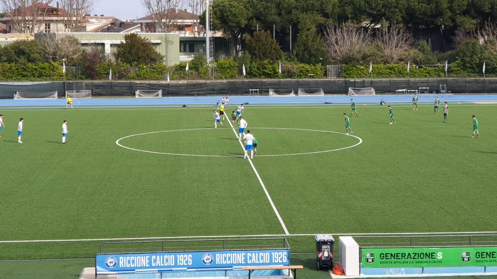Si va all'intervallo, dopo due minuti di recupero, con il Riccione avanti di un gol.