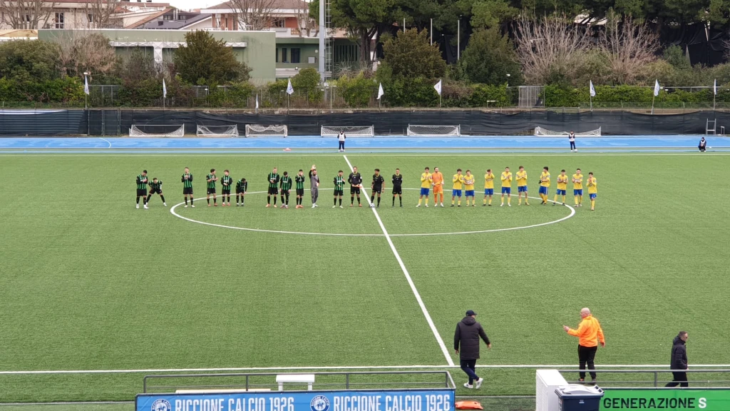 RICCIONE CALCIO 1926: 1 Barbanti, 2 Gabriele, 3 Labudiak, 4 Matteoni (1' st 13 Difino), 5 Manfroni, 6 Mussoni, 7 Serafini, 8 Tonini (47' st 19 Bellavista), 9 Pasolini, 10 Cremonini, 11 Pierri (1' st 17 Diop). A disp.: 12 Crescentini, 14 Sottile, 15 Giunchi, 16 Kacmoli, 18 Shehi, 20 Polverelli. All. Mugellesi.