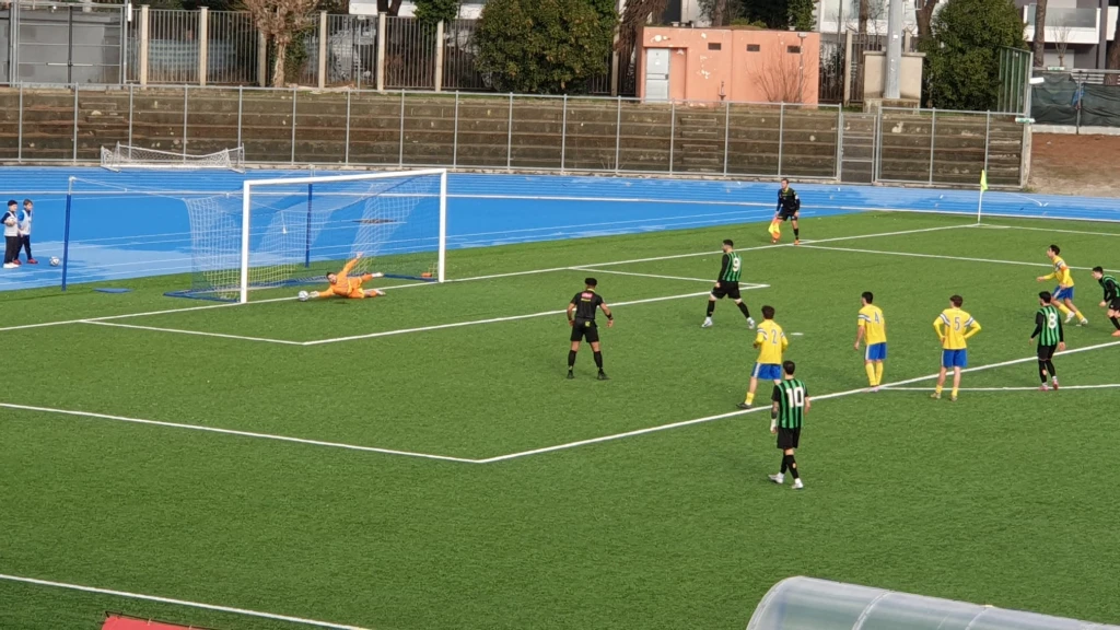 Al 38' il signor Davide Mongiorgi di Bologna indica il dischetto per questo contatto in area tra Tonini e Piva. Dagli undici metri Pasolini trasforma, nonostante Renzetti si tuffi dalla parte giusta. 1-1.