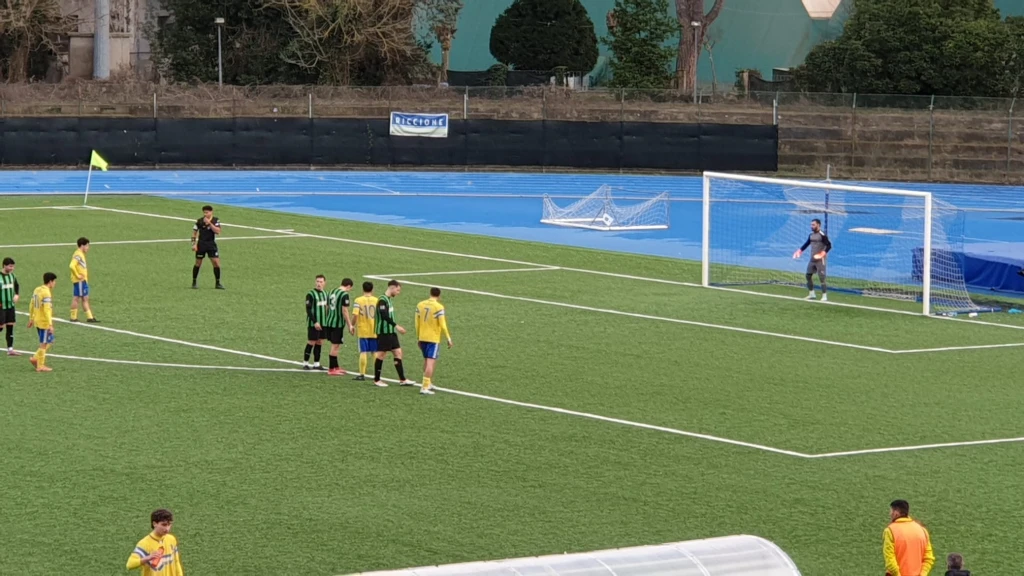 Al 42' il rigore è per i gialloblù, per fallo di Manfroni su Frihat. Sul dischetto si presenta Castellani, che trasforma. Riccione 1-Vis Novafeltria 2.