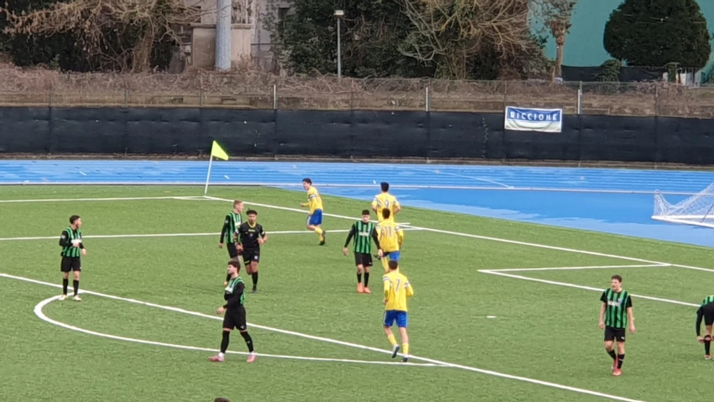 Dopo otto minuti di recupero arriva il triplice fischio. Tra Riccione e Novafeltria finisce 2-2. I biancazzurri salgono a 34, i gialloblù a 42.