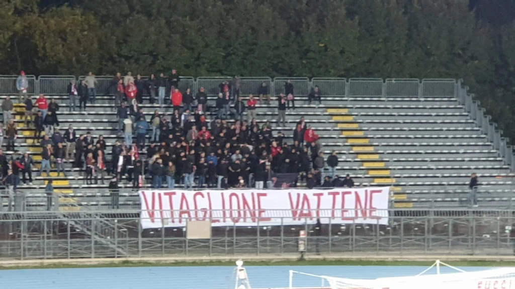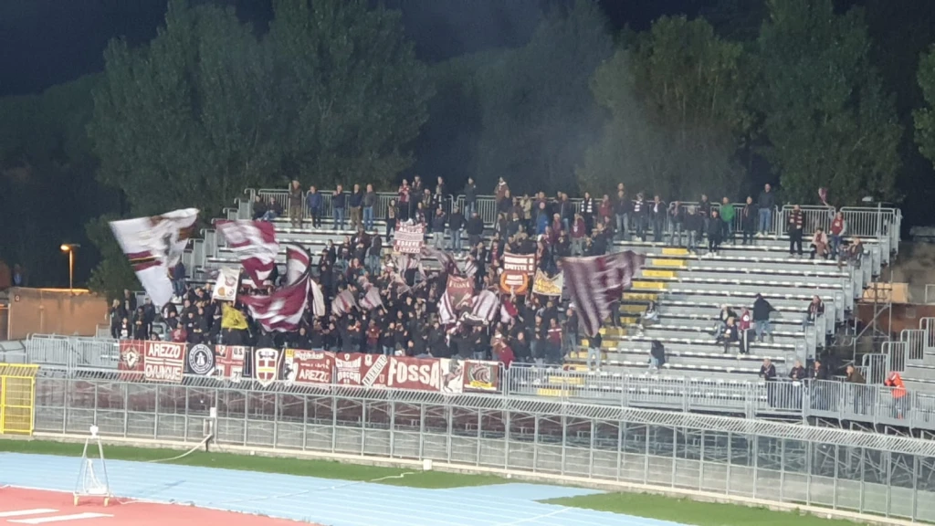 Dopo quattro minuti di recupero, arriva il triplice fischio. Vince l'Arezzo 1-0. Dopo il fischio finale arriva il rosso per Pattarello.