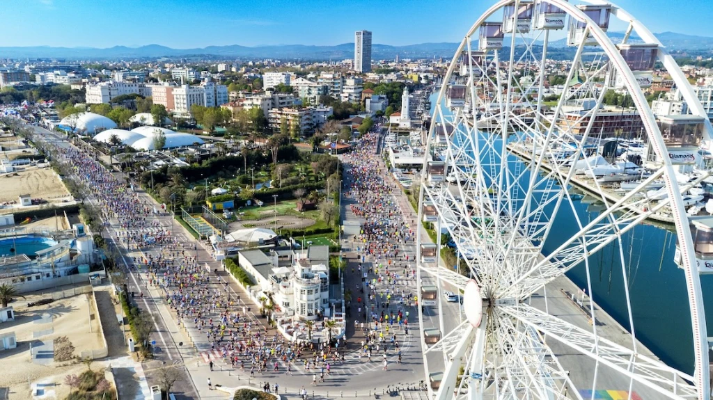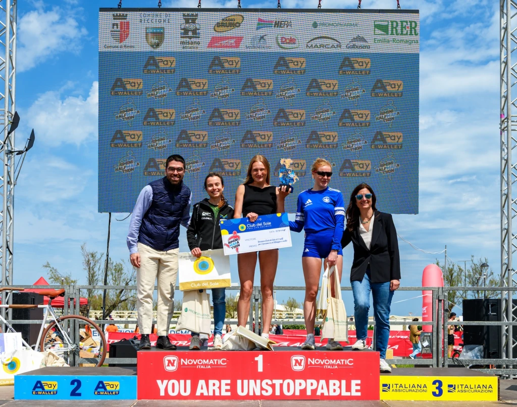 A rendere ancora più speciale questa edizione è stata la grande novità del 2026: la partenza spostata per la prima volta nel cuore di Marina Centro, dalla Rotonda Lucio Battisti, di fronte al Grand Hotel. Il percorso, pensato per unire la dimensione sportiva alla valorizzazione urbana, ha attraversato alcuni dei luoghi più rappresentativi: dal lungomare al porto, fino al centro storico con il passaggio su Corso d’Augusto, Piazza Malatesta, Piazza Cavour e l’Arco d’Augusto. Da lì, il tracciato ha riportato gli atleti verso la costa, lungo un tratto lineare e panoramico che ha toccato la Riviera fino a Riccione e Misano Adriatico, prima del rientro finale con il traguardo, posizionato in viale Antonio Beccadelli.