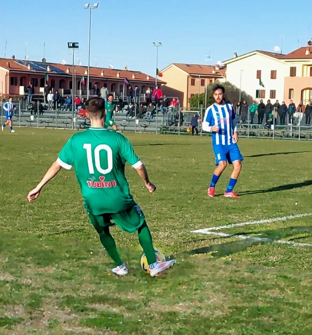 La partenza dei verdi non è semplice e ci vuole l'alleanza con la traversa colpita da Buffone per non andare sotto al 5', poco dopo ci prova Molari. Passato lo scotto iniziale, i padroni di casa iniziano a macinare campo e il primo a rendersi pericoloso è Capriotti in avvitamento. Al 25' bella azione manovrata, Chiussi apre per Garcia, il laterale rientra sul destro ma la conclusione accarezza l'esterno della rete. Al 35' invece il tiro-cross di Pironi viene spizzato da un difensore ospite e il portiere Di Renzo deve volare per evitare guai. Primo tempo senza reti e senza troppa incisività.