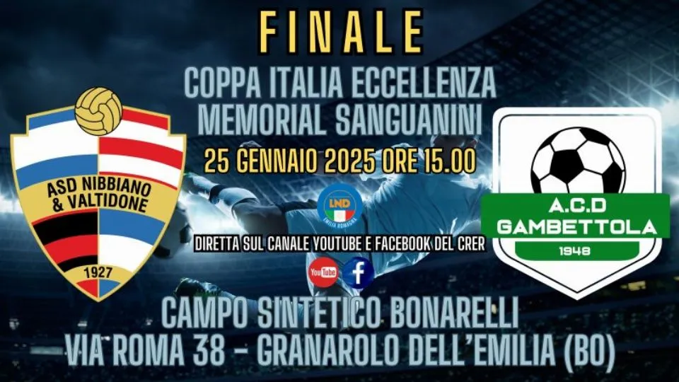 Sabato 25 gennaio alle ore 15, presso il campo sportivo in sintetico “Bonarelli” di Granarolo dell’Emilia (Bologna), si disputerà la finale della Coppa Italia di Eccellenza, prima edizione del Memorial “Dorindo Sanguanini”.