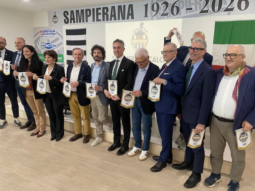 Il presidente del comitato organizzatore “Sampierana Story 100 onlus”, Sergio Pungelli, ha raccontato il secolo di storia del attraverso la storia dei presidenti, i successi e le cadute: su tutte, la promozione in serie D dalla Promozione con mister Giorgio Triboli nella stagione 88-89; la retrocessione l’anno seguente la vittoria del campionato successivo (91-92) con la sconfitta, però, agli spareggi promozione.