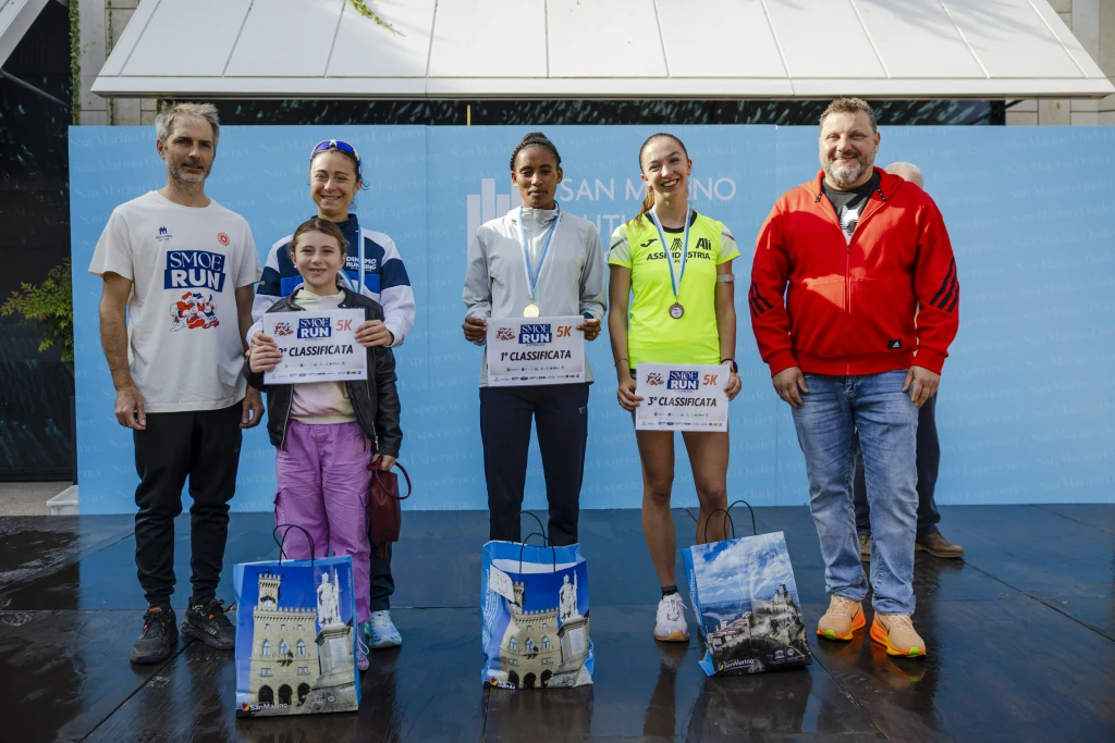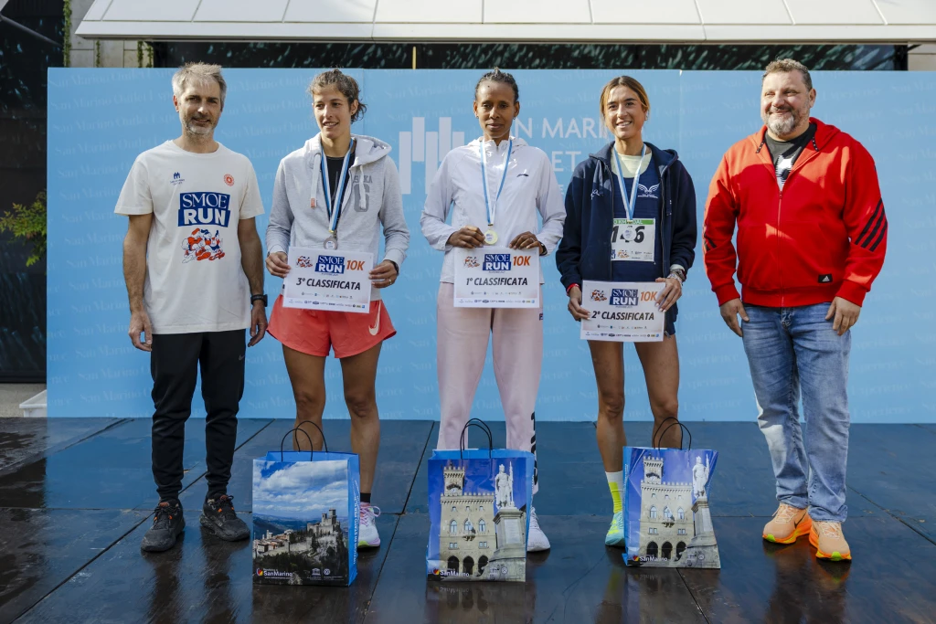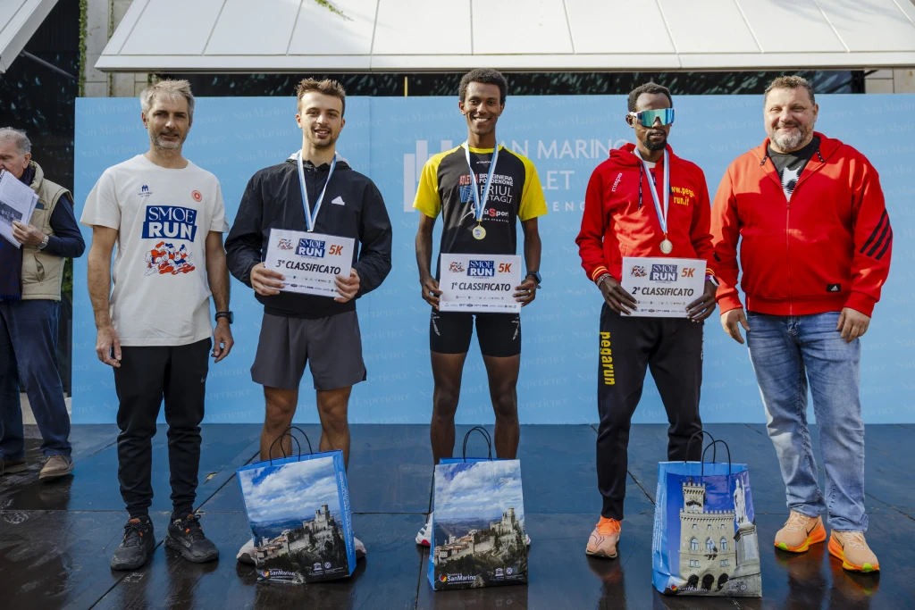 Nei 5 chilometri pronostici ribaltati in campo maschile, dove l’atteso favorito, il keniano Lenge Lolkurraru, ha dovuto subire 41 secondi di distacco da Masresha Costa (Atl. Brugnera Friuintagli, 14’51”), ventitreenne di Portogruaro (VE) che in questa stagione autunnale, proprio sui 5 km, aveva più volte espresso il proprio valore, dal Giro Podistico di Pordenone al Memorial Bruno Lolli di Bologna. Costa, già campione italiano “Promesse” (under 23) 2022 di cross country, allenato dal campione olimpico 2004 di maratona, Stefano Baldini, ha chiuso in 14’51” in totale controllo del ritmo, raccogliendo gli applausi e ricambiando i sorrisi del pubblico presente davanti alle vetrine del San Marino Outlet.