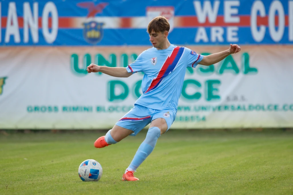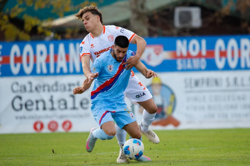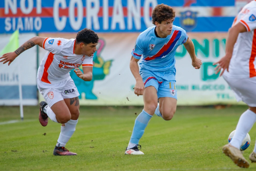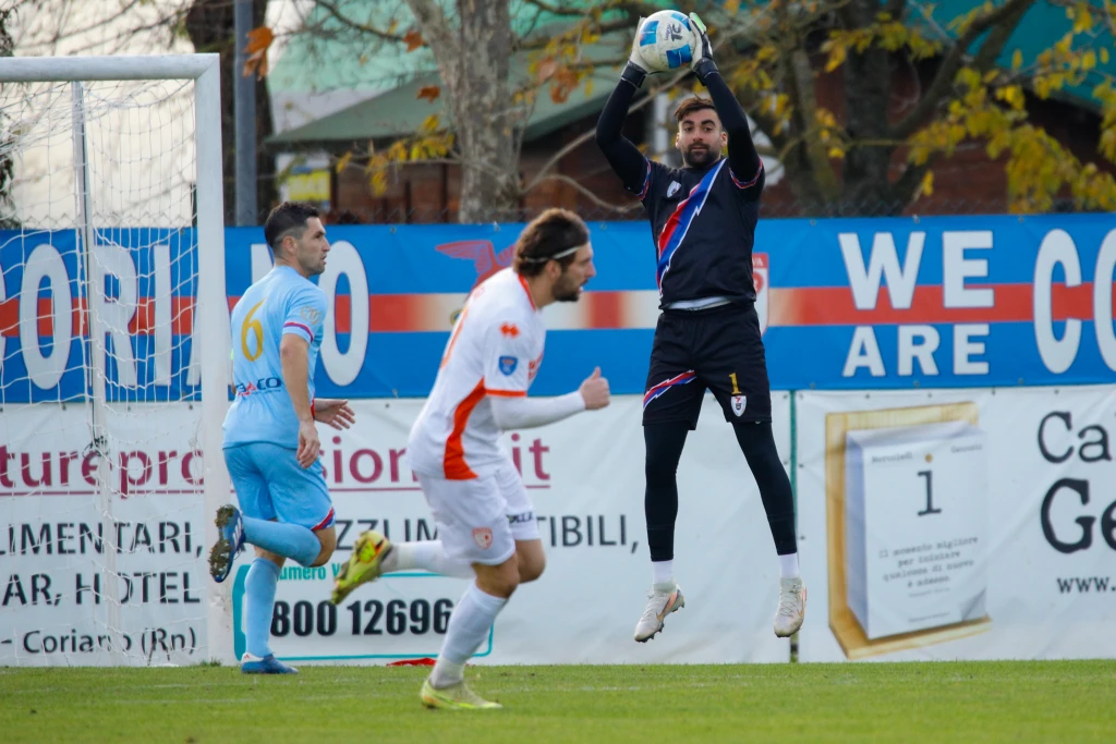 Al 18' cross dall'out di sinistra per il Coriano, sul secondo palo mancano il tap-in Pacchioni e Bellavista.