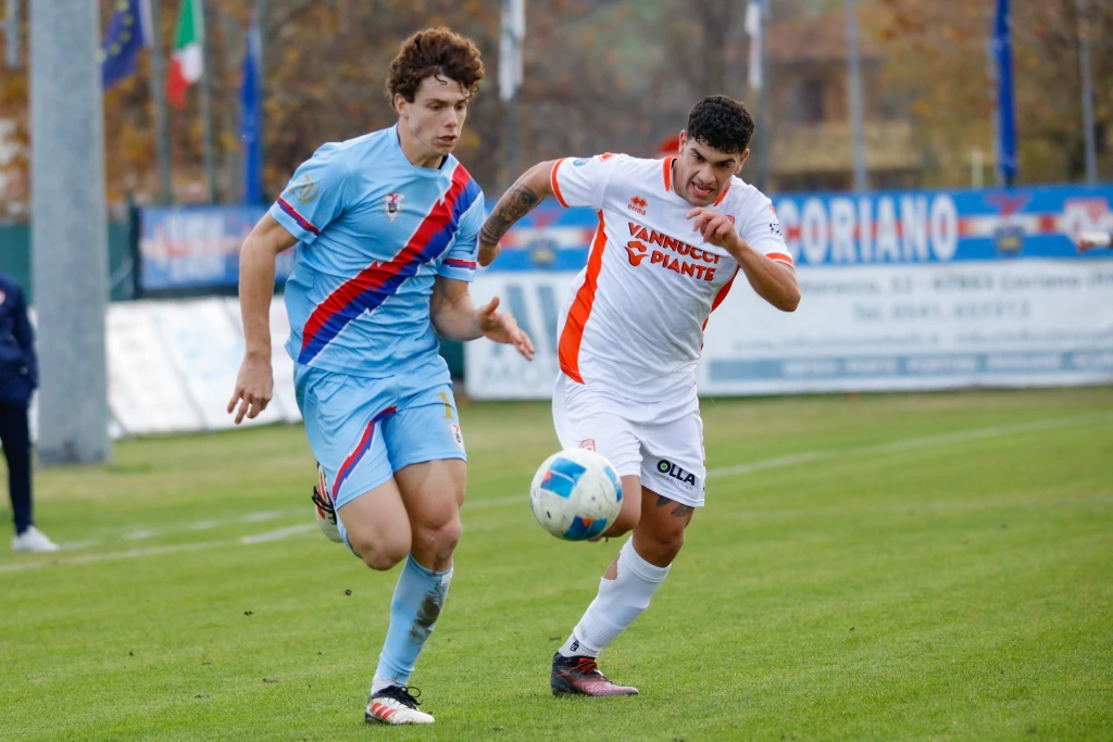 Alla mezzora Alluci colpisce a centrocampo Carnesecchi. Punizione per il Coriano e giallo per il giocatore della Pistoiese.