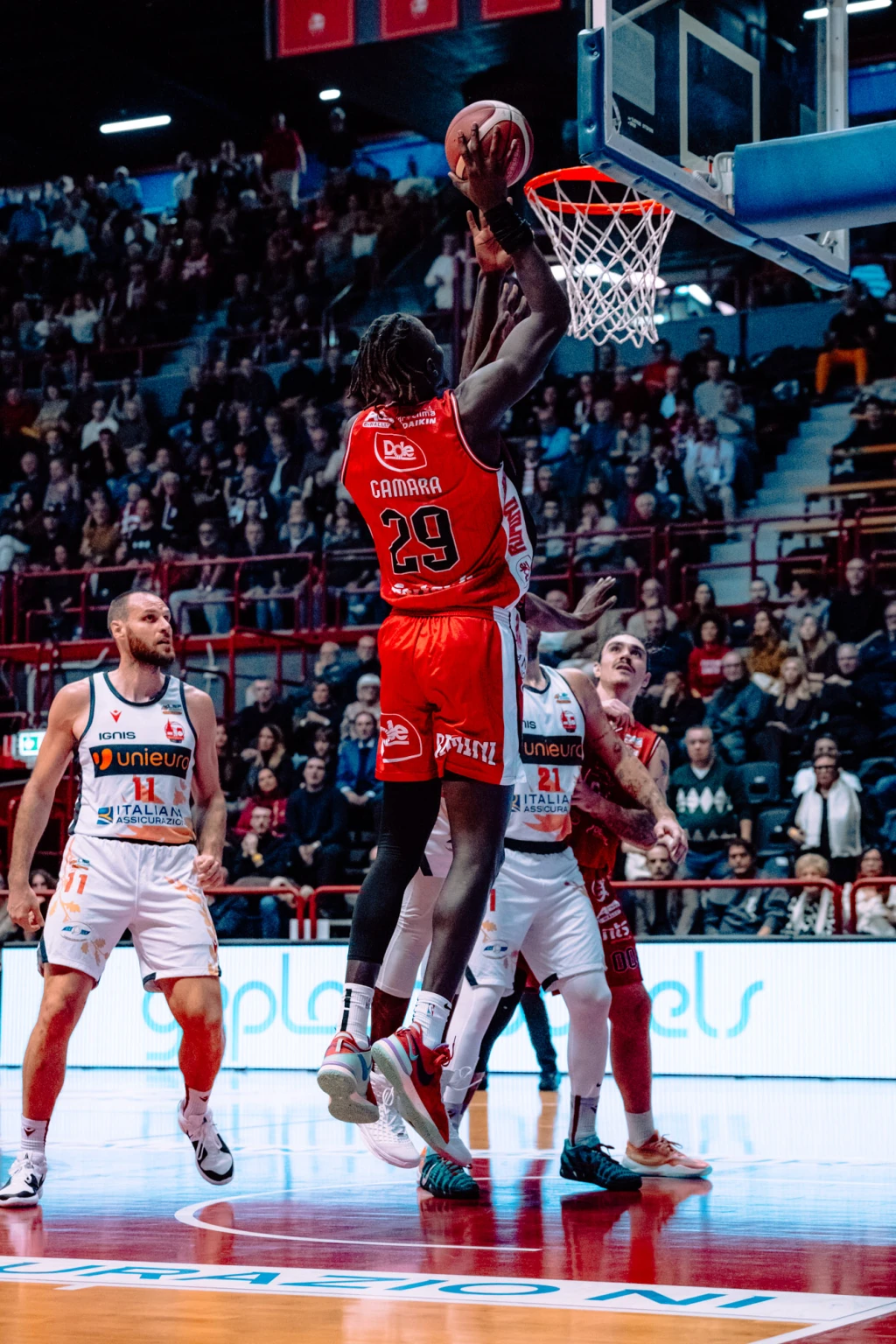 Il terzo fallo di Tomassini manda in lunetta Harper, che fa 2/2: 65-59. Harper stoppa Camara, rimbalzo offensivo e due punti di Leardini: 65-61.
