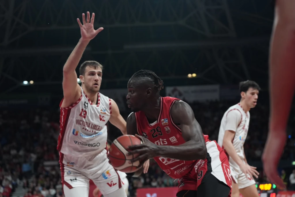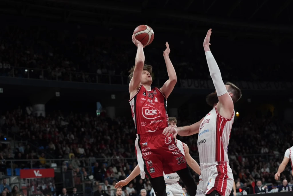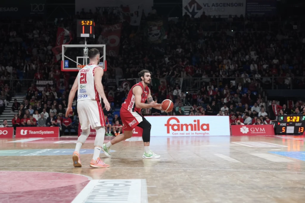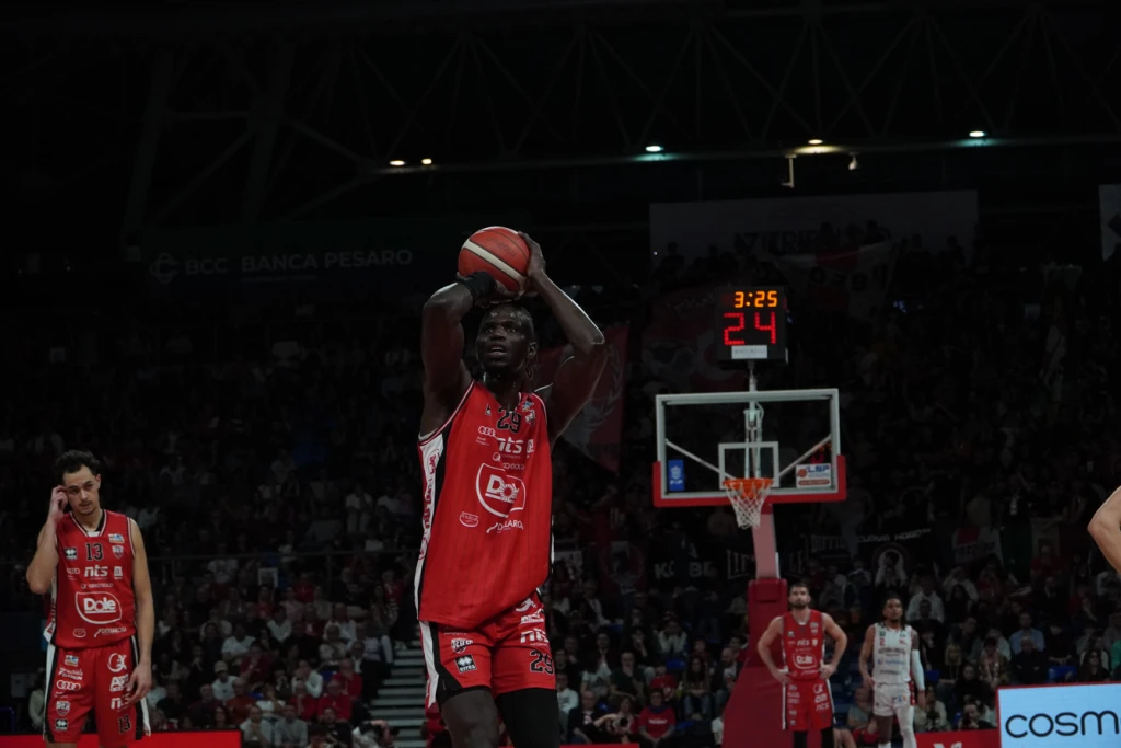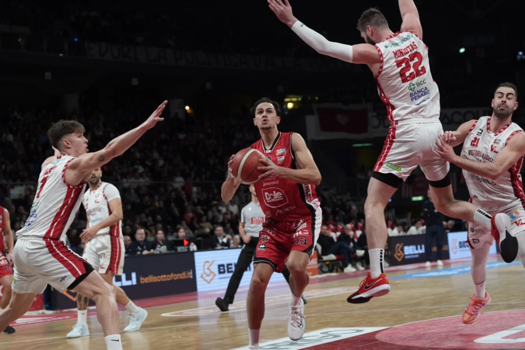 La Dole lotta, patisce un pesante parziale di 24-2 a cavallo tra il primo e il secondo quarto, poi tenta con tutti i mezzi di rientrare dal -20 (39-19) senza tuttavia mai riuscire a riagganciare il treno. L’extra sforzo per tornare nel match arriva al massimo fino al -6 (80-74) poi la VL Pesaro mette definitivamente le mani sul derby. Alla Vitrifrigo il match valido per il 29° turno della serie A2 si conclude sull’85-78. Proprio grazie a questo successo Pesaro passa a condurre con un margine di quattro punti in vetta alla classifica proprio al cospetto della Dole. Rimini che deve fare a meno anche di Marini espulso e con Denegri per tanti minuti gravato di quattro falli. Da evidenziare la splendida cornice il cui si è disputata una partita attesissima sin dalla vigilia: 6.982 gli spettatori di cui quasi 700 giunti da Rimini a bordo di 11 bus. Tifosi riminesi che non hanno mai smesso nemmeno un secondo di incitare la propria squadra.